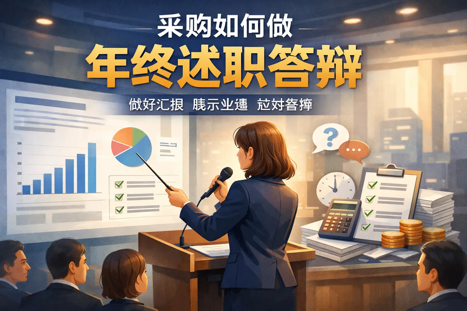 本文围绕采购年终述职答辩展开,从核心逻辑搭建、内容模块拆解、演示素材打磨、现场应对技巧和复盘优化五个维度,结合权威行业报告数据和实战框架,提出以管理层诉求为核心、用定量数据替代定性描述的述职方法,帮助采购从业者构建结构化答辩内容,提升价值传递效率与述职通过率。
