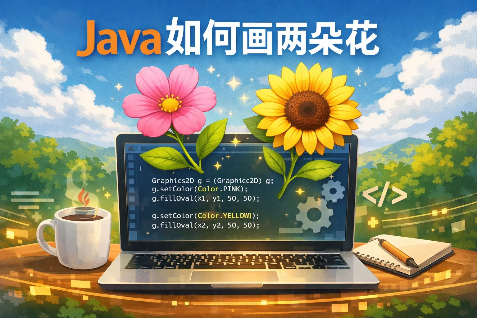 java如何画两朵花