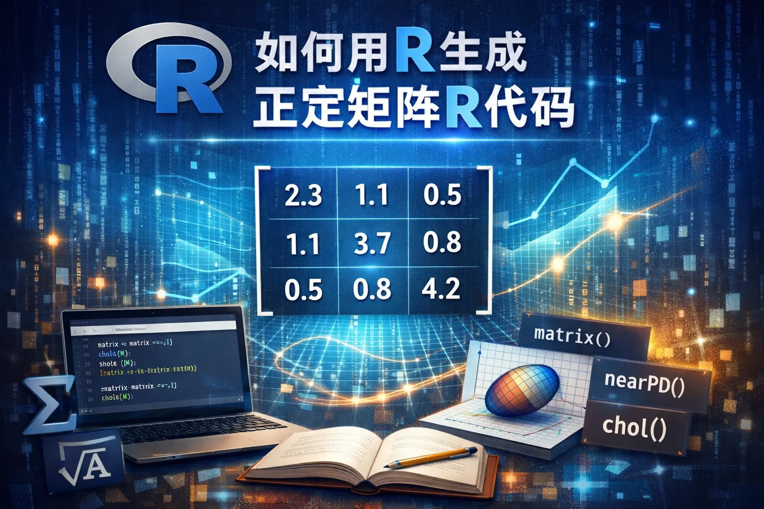 在 R 中生成正定矩阵可通过 AᵀA 构造、对角占优设计、特征值分解控制以及 Wishart 分布生成等方式实现。其中 AᵀA 方法最通用,Wishart 适合统计建模,特征值分解适合精确控制谱结构。生成后可用 eigen 或 chol 验证正定性,并通过添加对角扰动或 nearPD 修正提高数值稳定性。掌握这些方法有助于在统计分析与机器学习中稳定构造协方差与优化矩阵。