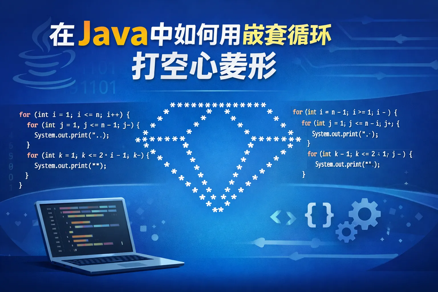 在java中如何用嵌套循环打空心菱形