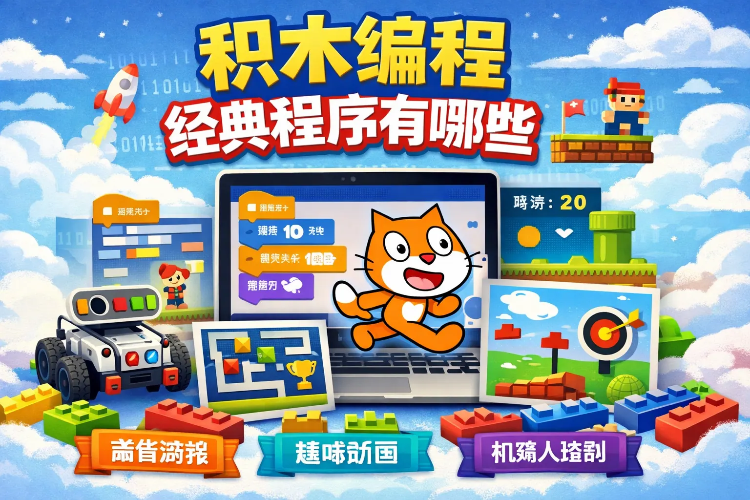 积木编程经典程序包括走迷宫、弹跳小球、贪吃蛇、打地鼠、简单计算器、动画故事和智能交通灯等项目,这些案例覆盖循环、条件判断、变量、列表和事件驱动等核心知识点,是培养计算思维的重要训练方式。通过基础互动类、控制结构类、游戏类、数据处理类和算法类项目的循序练习,学习者能够逐步建立完整的逻辑体系,并为后续深入学习文本编程语言打下基础。随着教育技术发展,积木编程经典程序正向系统化与智能化方向演进。