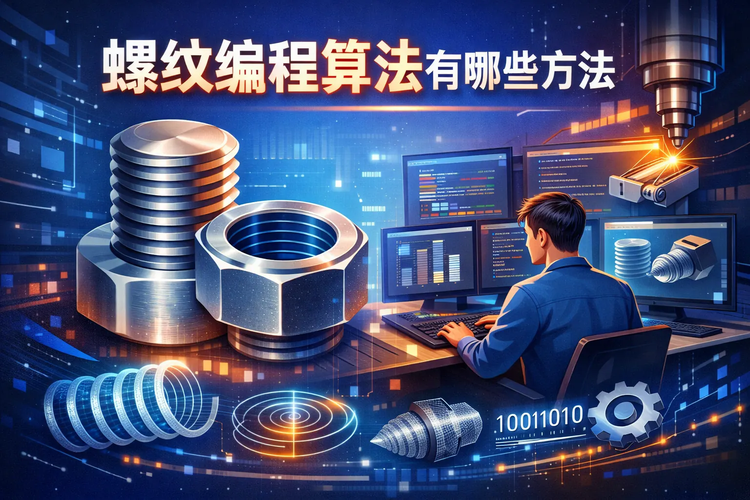 螺纹编程算法主要包括固定循环、螺旋插补、宏程序参数化及多轴联动等方法,其核心是通过主轴转速与进给量的精确同步形成稳定螺旋轨迹。不同算法在精度控制、编程复杂度和适用场景上各有侧重:标准批量加工适合固定循环,复杂或非标螺纹更适合宏程序与多轴算法。未来螺纹加工将向智能补偿、自适应控制与数据驱动优化方向发展。