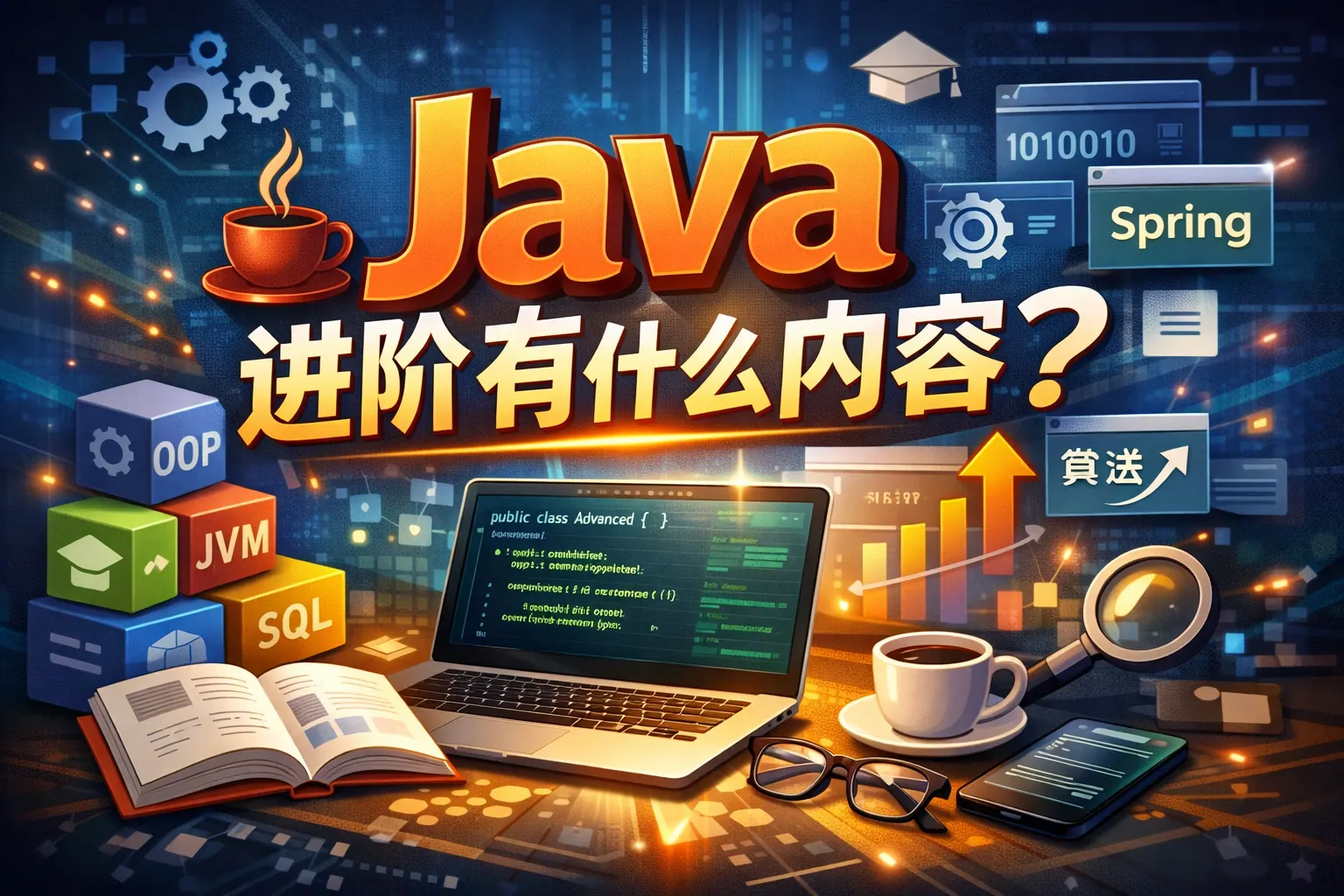 Java 进阶主要涵盖语言机制深化、JVM 原理、垃圾回收与性能调优、并发编程、集合与数据结构、IO 与网络模型、工程化设计以及框架原理理解等内容。它关注的不再是语法使用,而是程序运行原理、系统稳定性与可扩展性。通过进阶学习,开发者能够分析复杂问题、优化性能并承担系统设计责任,这也是从初级走向中高级 Java 工程师的关键路径。