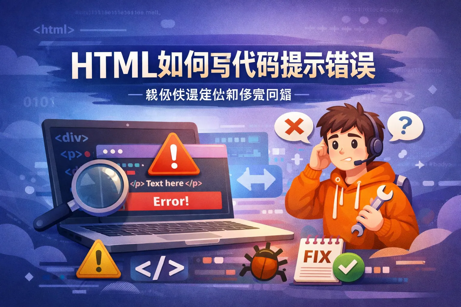 HTML 本身不会主动报错,因为浏览器具备容错解析机制。要实现代码提示错误,需要借助浏览器开发者工具、W3C 校验服务、代码编辑器实时语法提示以及 HTMLHint 等本地检测工具。同时,HTML5 表单验证与 JavaScript 也可用于实现用户输入错误提示。在企业开发中,应建立自动化校验流程,以提升代码质量与 SEO 表现。随着智能化工具发展,HTML 错误提示正向自动化和智能辅助方向演进。