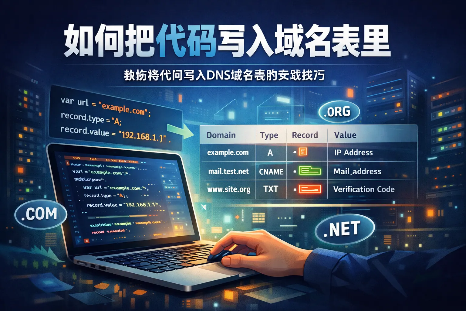 将代码“写入域名表”并非真的把程序存入域名系统,而是通过DNS解析和服务器绑定,让域名指向部署代码的服务器。核心步骤包括:代码先部署到可公网访问的服务器;在域名后台添加A记录或CNAME记录指向服务器IP;在Web服务器中绑定域名;必要时配置HTTPS证书。理解DNS工作原理和记录类型,是正确完成域名与代码关联的关键。随着云平台自动化能力提升,域名解析与代码部署正逐步实现流程化和智能化管理。