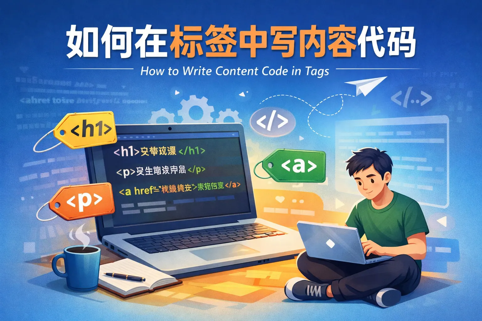 如何在标签中写内容代码
