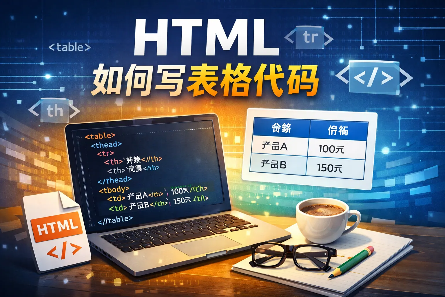 html如何写表格代码