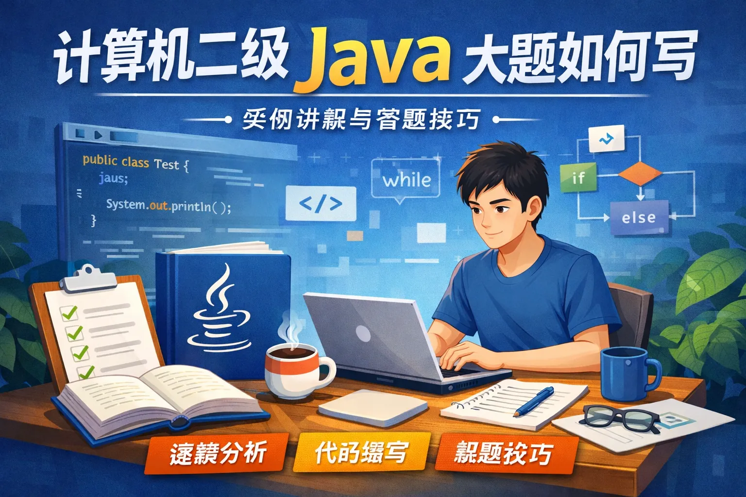 本文围绕计算机二级Java大题写作展开,从评分标准拆解、题型答题技巧、实操模块化写法、考前准备策略到考场应急方案多维度讲解,提出按踩分点优先实现核心功能的答题思路,结合权威报告数据验证方法有效性,帮助考生抓准得分重点,提升考试通过率。
