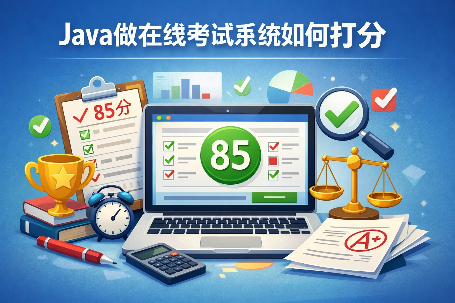 本文结合实战经验拆解了Java在线考试系统打分的全流程,梳理了客观题、主观题、编程题三类题型的自动化实现路径,通过对比表格呈现了三类题型的开发成本与打分精度,引用权威报告数据验证了混合式架构的效率优势,同时介绍了性能优化与风险规避的实战方案,为不同规模企业提供了适配的选型建议。