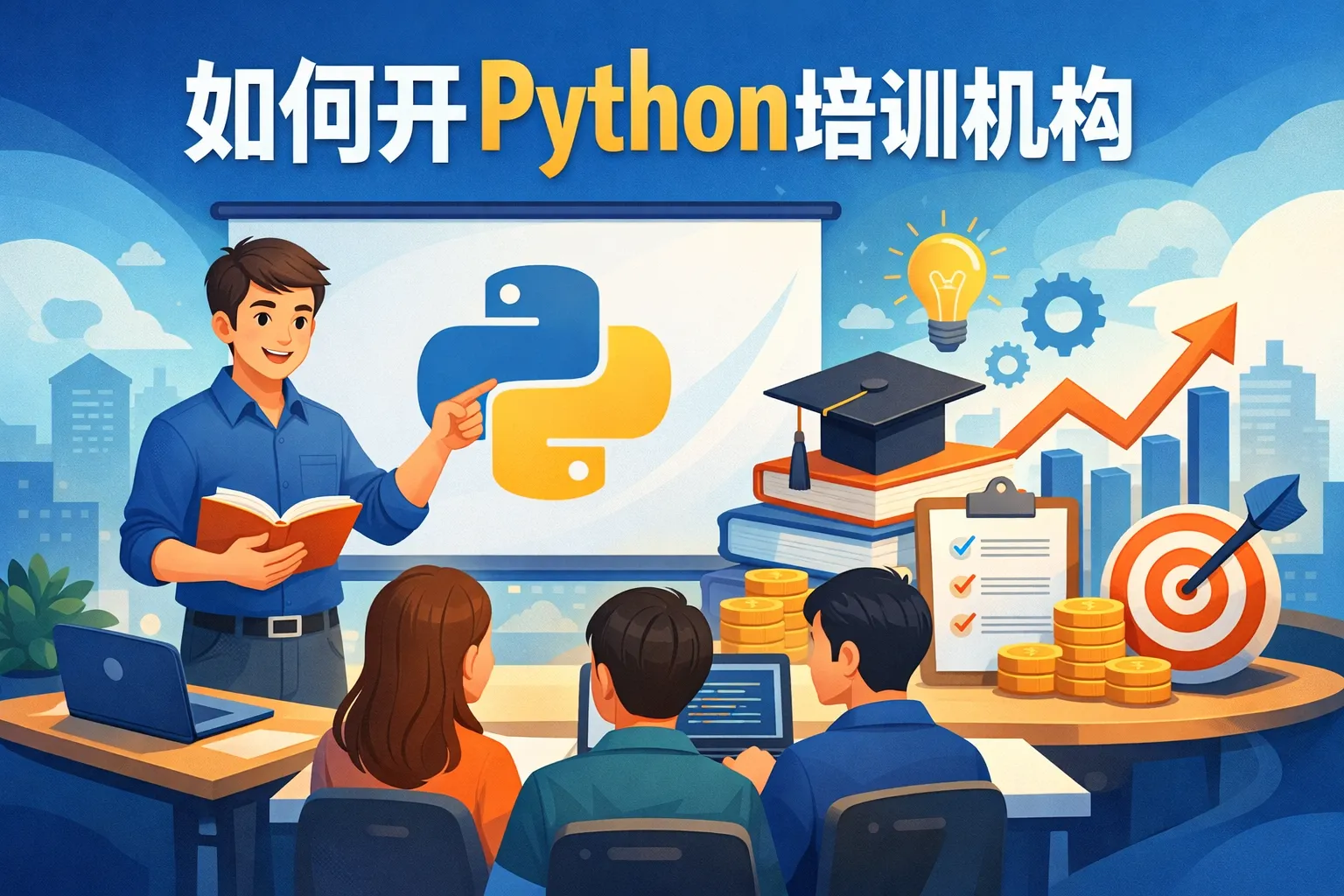 本文系统解答如何开办Python培训机构:以就业与场景为导向明确定位与差异化,依法合规完成资质与合同,构建项目驱动的课程与多元评价,打造稳定的师资与流程化教务,建立官网与SEO/GEO增长飞轮并掌控CAC、LTV与毛利等关键财务指标;通过线上线下混合教学与标准化流程实现规模复制,结合权威趋势与数据化管理,围绕合规、能力与优化构建长期可持续的教育业务。