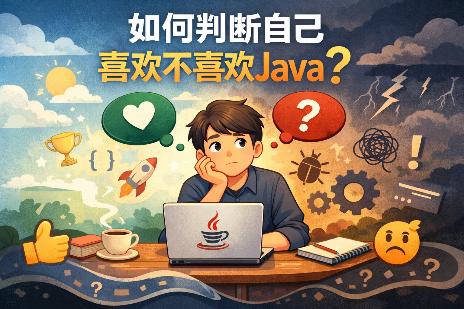 本文从基础代码体验、项目落地实践、职业路径匹配三个维度,结合JetBrains和拉勾网的权威行业报告,讲解新手如何精准判断自己是否喜欢Java,拆解薪资驱动和框架热度绑架的伪喜好误区,并提供3步自我测试法等量化工具帮助开发者做出理性决策,同时分享长期维护Java兴趣的实操技巧。