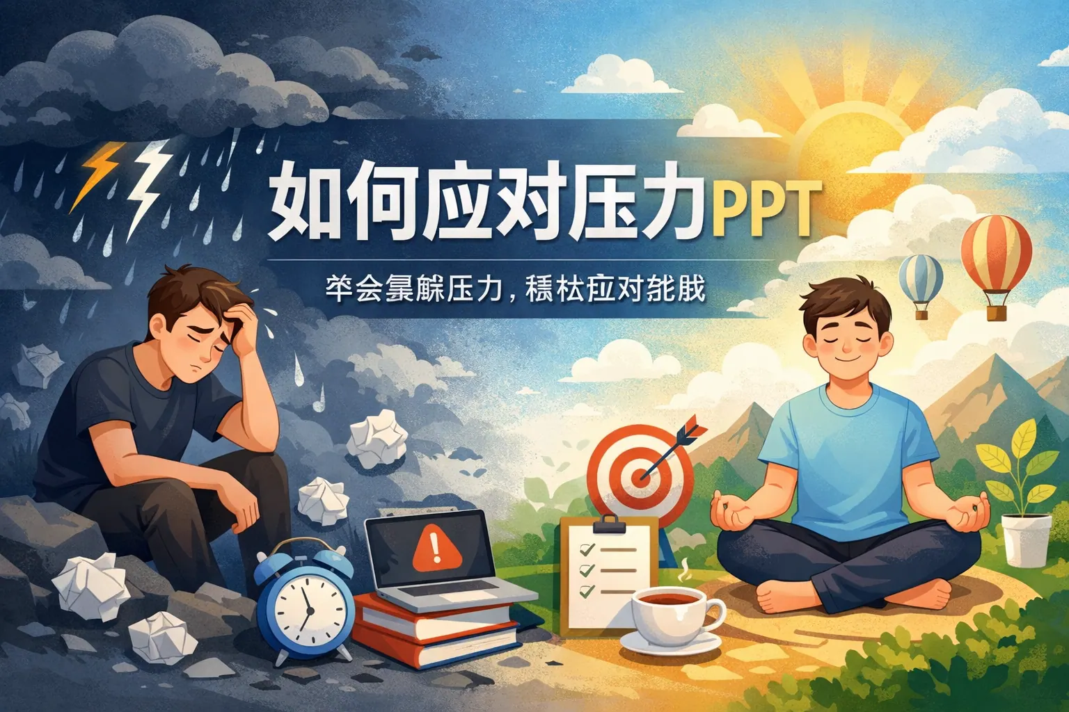 制作“如何应对压力”PPT的关键在于构建清晰结构,并结合科学研究与可执行方法,帮助听众理解压力机制并掌握调节策略。内容应涵盖压力定义、来源分析、负面影响、认知调整、时间管理、情绪调节及长期支持系统等模块,并引用权威研究增强专业性。通过图表对比与互动练习提升呈现效果,使压力管理从理论走向实践,实现从被动缓解到主动管理的转变。