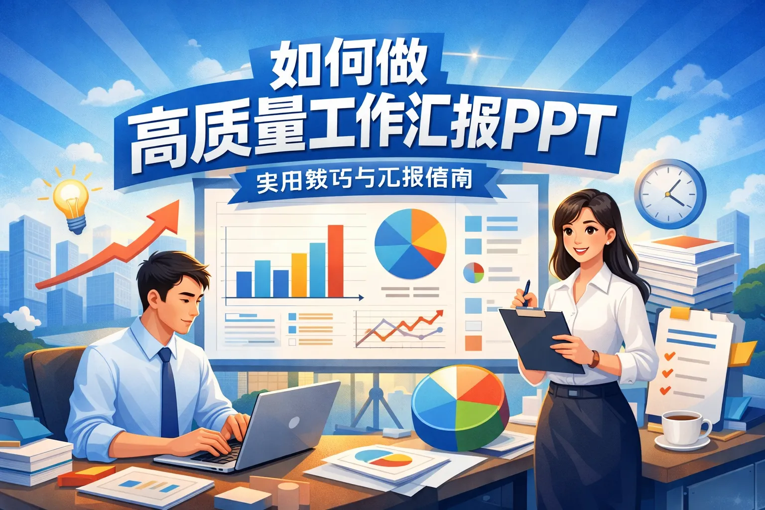 高质量工作汇报PPT的关键是以决策为导向:明确受众与目标,用金字塔结构组织内容,通过结论先行与数据故事呈现核心信息,并以统一版式和规范可视化提升可读性;演示阶段管理时间与问答,复盘用指标评估效果并沉淀模板和组件库形成组织资产;在协作上结合项目系统与在线文档提高素材可追溯与版本管理,逐步实现结构化、标准化与可复用的汇报体系。