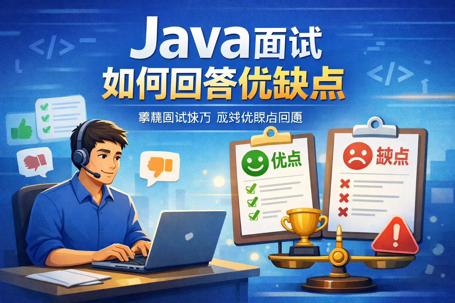 这篇文章围绕Java面试中优缺点的回答展开,结合两大权威行业报告的数据,讲解了面试回答的底层逻辑,给出了优势回答的三个实战框架和劣势回答的避坑公式,附上正反案例对比表格,还针对不同Java开发岗位提供了差异化答题模板,帮助求职者精准匹配面试官的考察需求,避开常见雷区,提升面试通过率。