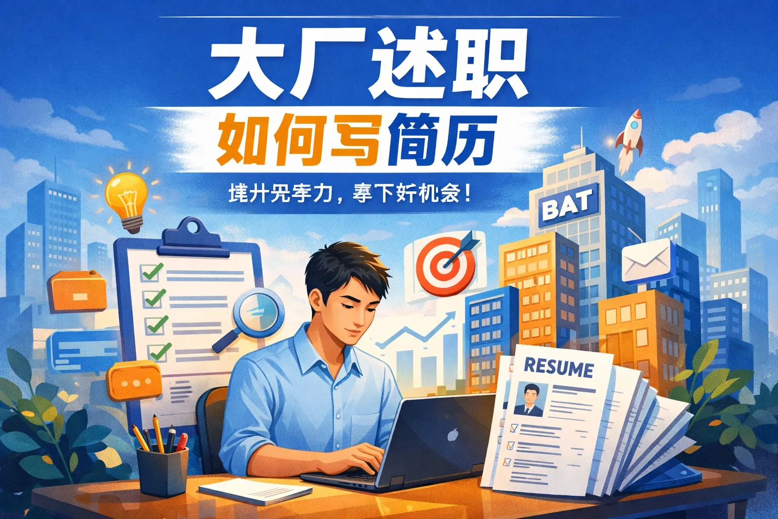 这篇文章围绕大厂述职式简历撰写展开,讲解了大厂简历筛选的底层逻辑,阐述了如何将述职汇报框架转化为简历叙事结构,介绍了述职式简历核心模块的搭建方法和数据呈现细节,对比了传统简历和述职式简历的差异,同时讲解了适配国内外大厂的差异化优化要求和避坑指南,引用权威报告数据证明述职式简历能有效提升大厂简历通过率。
