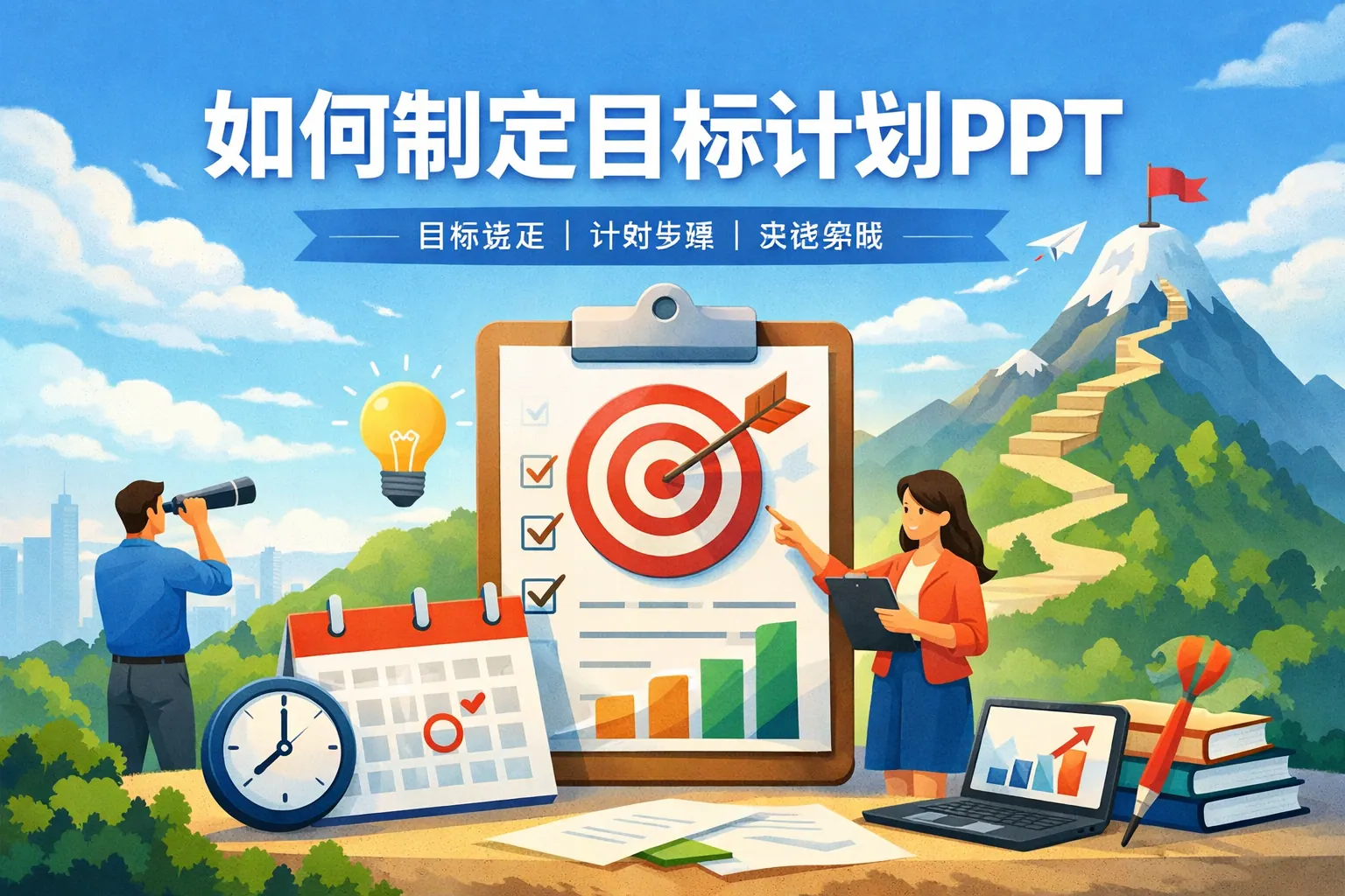 制定目标计划PPT的关键在于构建清晰的结构逻辑,通过目标分层、数据化现状分析、路径拆解、时间里程碑、资源配置和风险评估形成完整执行闭环,同时配套绩效跟踪与复盘机制。优秀的目标计划不仅展示“做什么”,更要回答“为什么做、怎么做、如何衡量”。结合科学目标理论与管理方法,可以显著提升汇报说服力与执行成功率。未来目标管理将更加数据驱动和动态化。