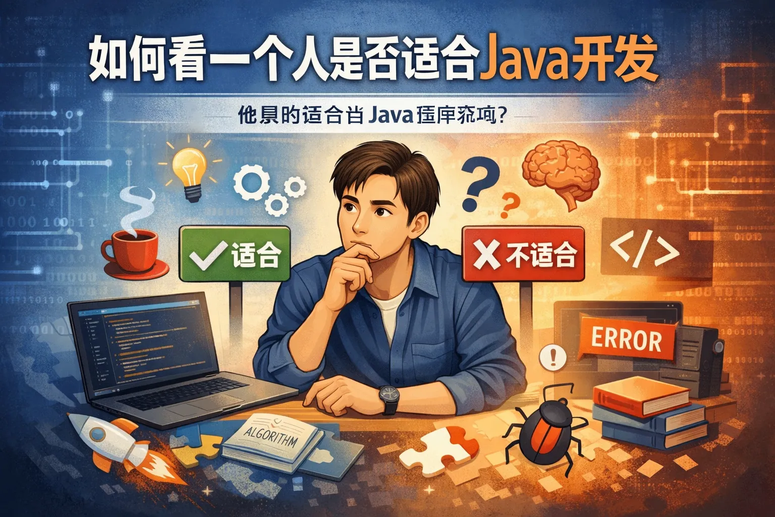 本文从底层思维能力、职业行为特征、实践落地能力和长期发展兼容性四个维度,结合行业权威报告数据搭建了一套Java开发适配性评估框架,通过自评对照表、结构化面试、在线编程测试等方法帮助从业者和招聘方完成适配度判断,平衡天赋适配与后天成长空间,避免单一维度的误判