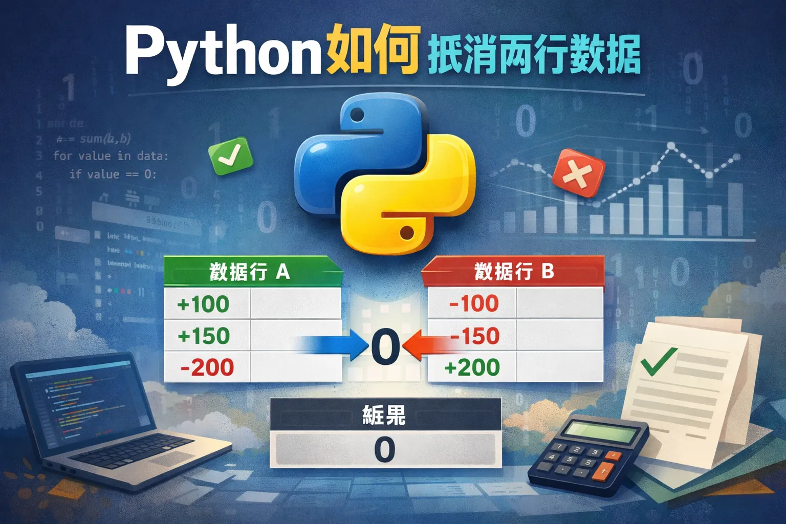 Python如何抵消两行数据