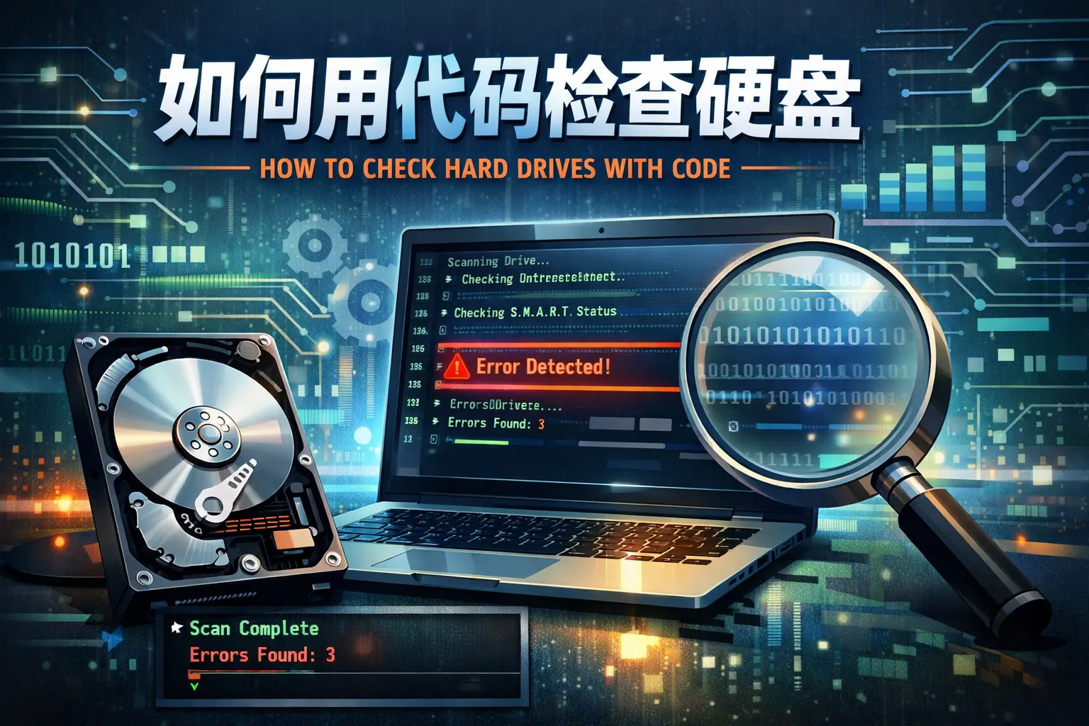 通过代码检查硬盘,核心在于读取S.M.A.R.T健康参数、扫描坏道、检测文件系统状态并结合自动化脚本进行持续监控。Windows可通过WMI接口读取磁盘预测状态,Linux可借助smartctl工具获取详细健康数据。关键指标包括重新分配扇区数、待处理扇区数、温度与读写异常趋势。企业环境中应建立“数据采集+阈值判断+异常告警”的自动化机制,并结合趋势分析进行预测性维护。未来硬盘检测将向智能化、模型化方向发展,实现更高效的数据安全管理。