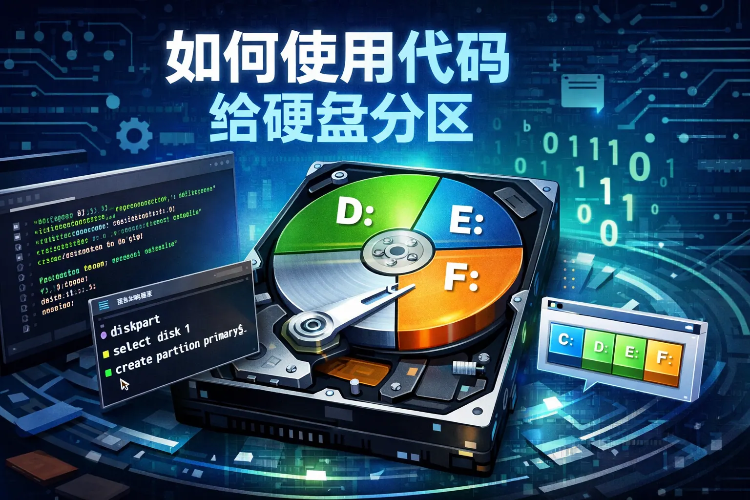 使用代码给硬盘分区是通过系统命令行工具如Windows的DiskPart或Linux的fdisk、parted等,对磁盘创建分区表、划分分区并格式化文件系统的过程。相比图形界面方式,代码分区更适合自动化部署和批量运维,尤其在服务器与云环境中应用广泛。掌握分区原理、分区表类型以及命令结构,并结合脚本实现标准化流程,能够在提升效率的同时降低人为操作风险。随着自动化与云计算的发展,代码分区将更加融入基础设施管理体系中。
