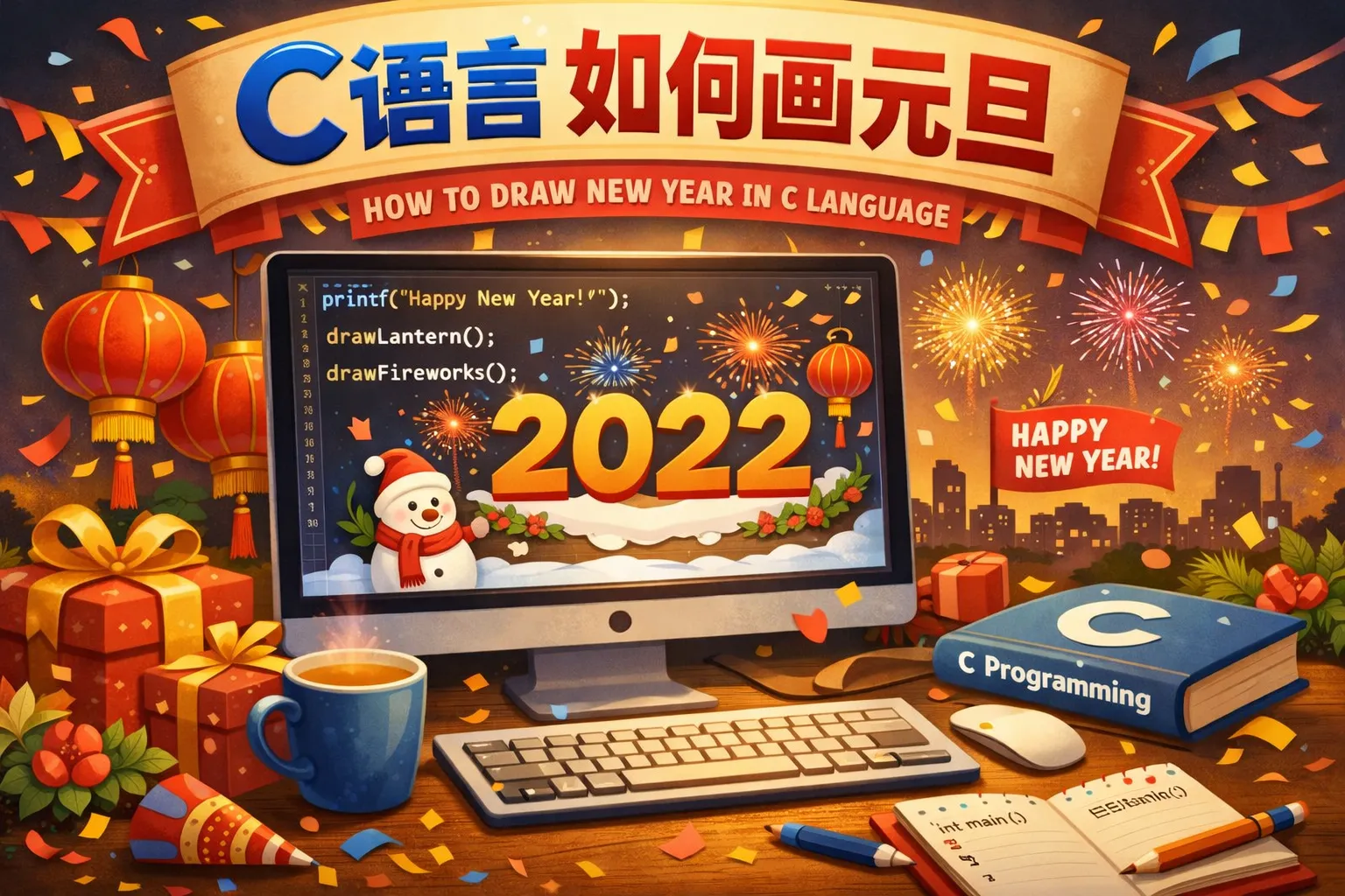 c语言如何画元旦