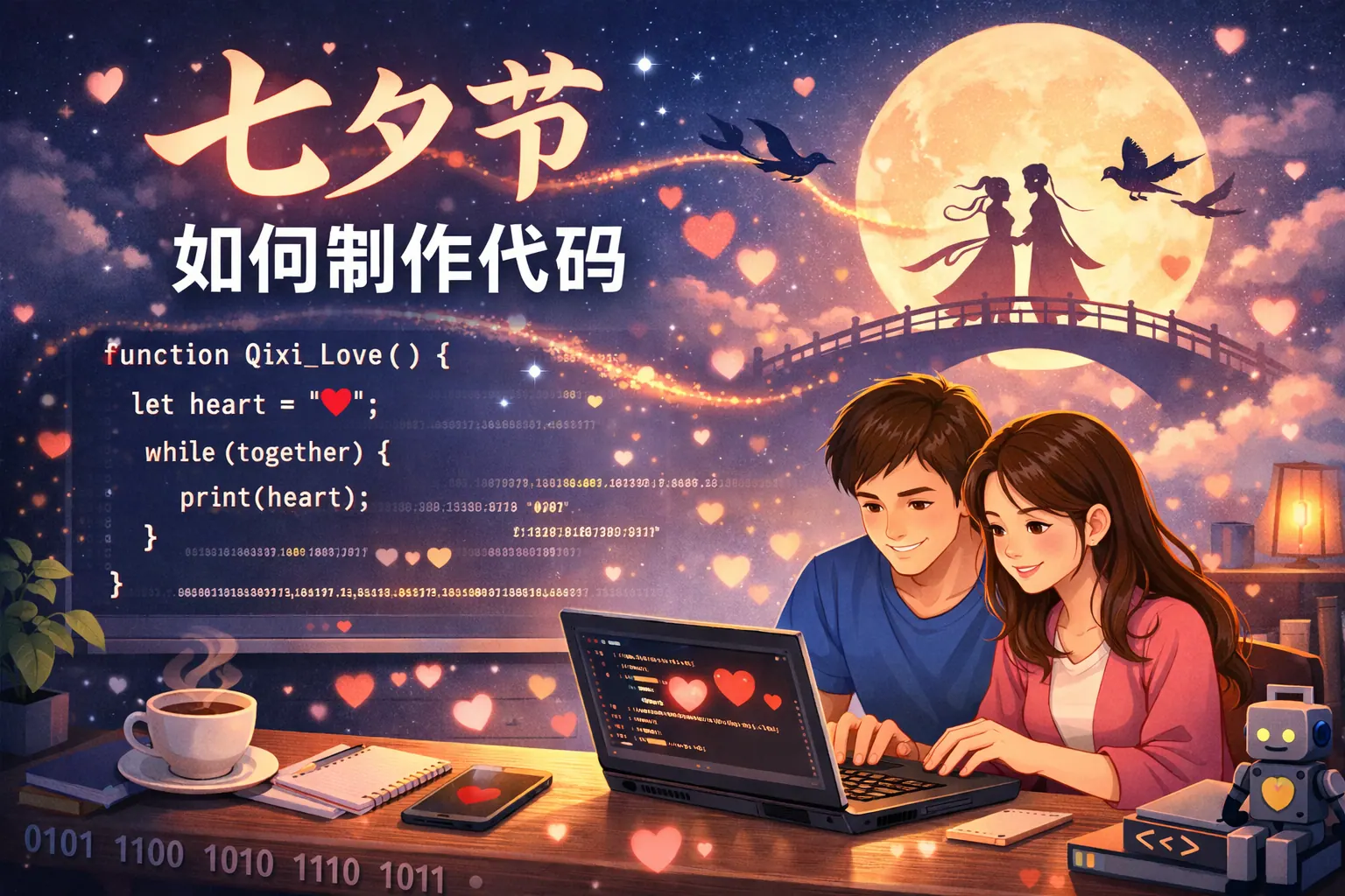 七夕节可以通过制作表白网页、互动动画、小程序或小游戏等方式,用代码表达情感与创意。核心在于增强互动体验与视觉设计,通过HTML、CSS、JavaScript或Python实现心形动画、倒计时、粒子特效等功能,并结合合理部署方式进行分享。未来随着生成式技术的发展,七夕代码创作将更加便捷和个性化。