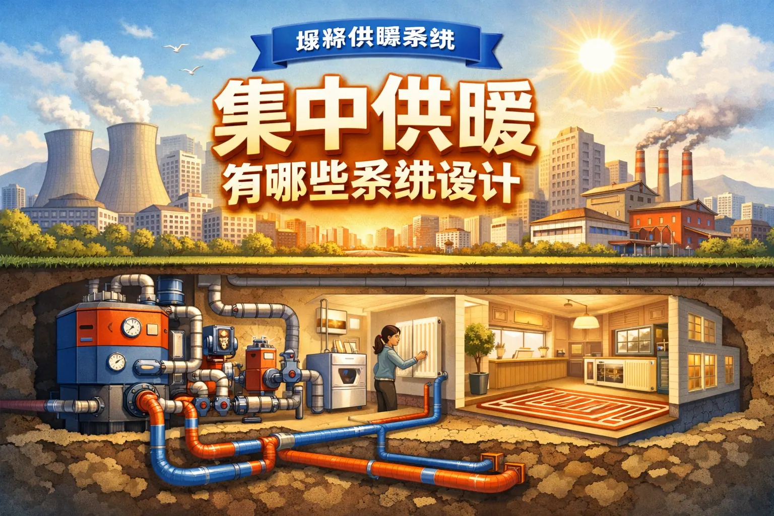 集中供暖系统设计包括热源系统、输配管网、换热站、末端设备、自动控制与节能计量等多个子系统,不同城市规模和能源结构决定设计方案差异。科学设计应围绕安全、节能与低碳目标,通过优化热源配置、提升管网效率、应用智能控制,实现稳定运行与能源高效利用。未来集中供暖将向低温化、数字化与多能融合方向发展,成为城市综合能源体系的重要组成部分。