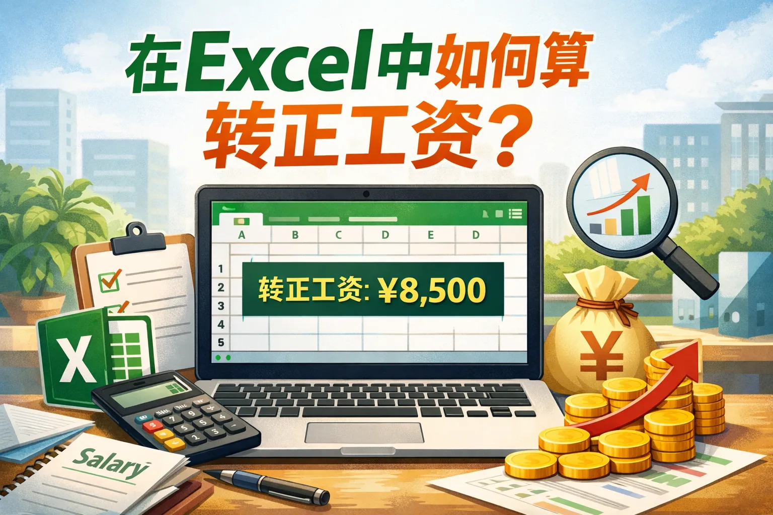 在excel中如何算转正工资