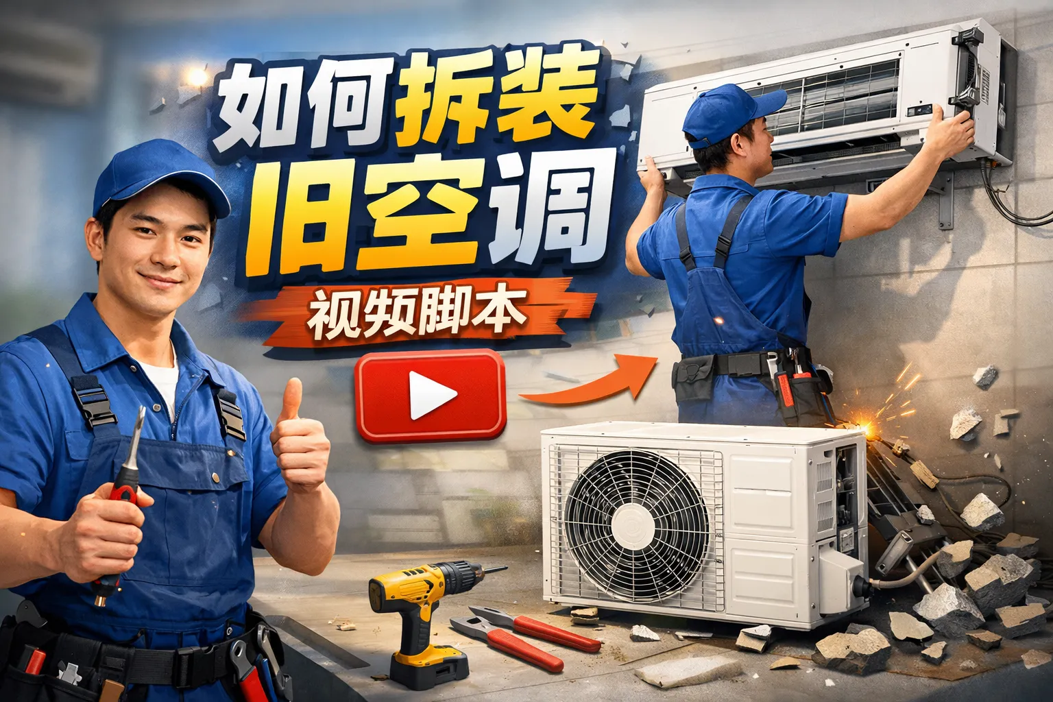 如何拆装旧空调视频脚本