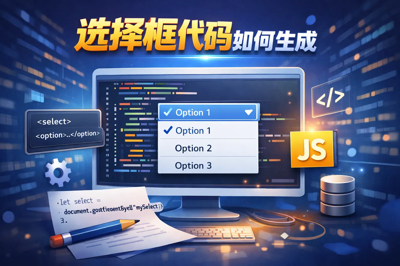 选择框代码通常通过HTML的select与option标签生成,可结合JavaScript实现动态渲染,也可在前端框架中通过组件化方式构建。静态方式适用于固定选项,动态方式适合数据驱动场景。开发中需关注可访问性、样式优化及系统数据字典管理。随着组件化与低代码趋势发展,选择框生成将更加配置化与自动化。