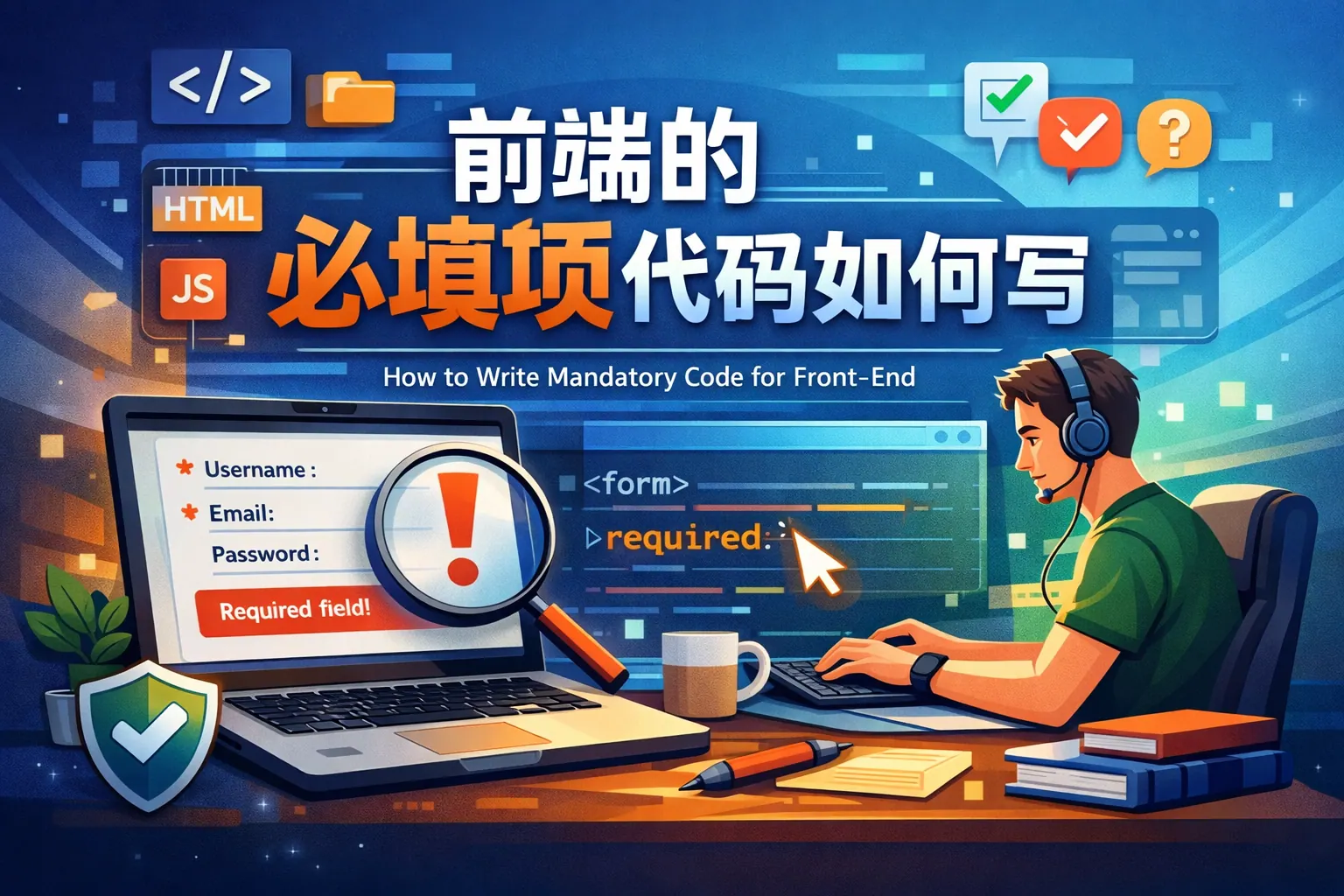 前端必填项代码的核心是在表单层通过 HTML required 属性、JavaScript 校验逻辑或框架机制对输入值进行非空判断,并结合错误提示与阻止提交机制提升用户体验。原生属性适合简单场景,JavaScript 与框架方案适用于复杂业务,同时必须配合后端二次校验以保障数据安全。在大型项目中应统一管理验证规则,实现前后端一致与工程化维护,未来趋势将向类型约束与自动化生成方向发展。