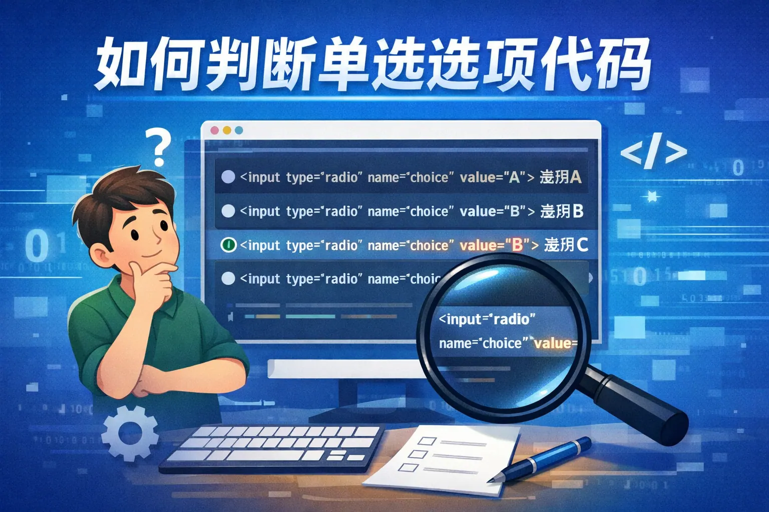 判断单选选项代码是否正确,关键在于验证其是否符合HTML标准结构,包括是否使用type="radio"、是否通过相同name实现分组、value是否唯一、是否只存在一个checked默认值,以及数据是否能正确提交到后端。还需结合前端框架的数据绑定逻辑与可访问性规范进行排查。通过结构检查、交互测试与数据验证三步法,可以系统化评估单选代码质量并避免多选、回显失败等常见问题。掌握name控制分组、value控制数据、checked控制状态这三大核心原则,是判断单选代码的基础。