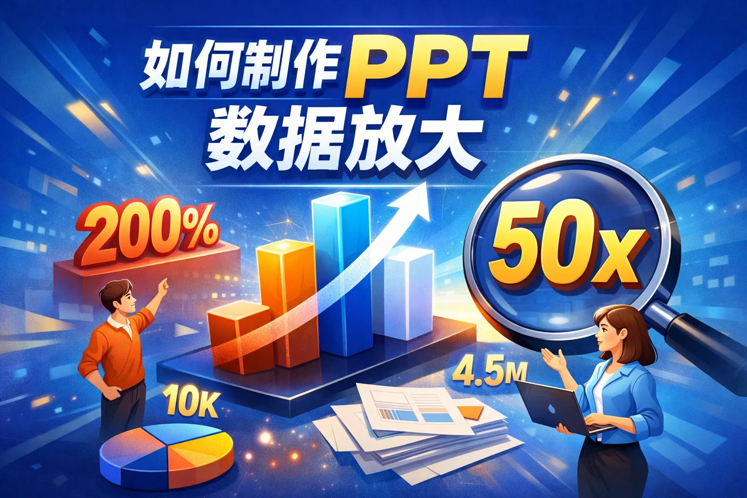 在 PPT 中制作数据放大效果的核心在于通过视觉层级重构、字体与排版强化、颜色对比、图表局部突出以及动画渐进呈现等方式,让关键数据在复杂信息中形成聚焦。合理运用留白与结构拆分能进一步增强表达张力。避免过度动画和颜色混乱是优化关键。随着演示工具智能化发展,数据放大将更加动态化与沉浸化,成为提升信息表达影响力的重要能力。