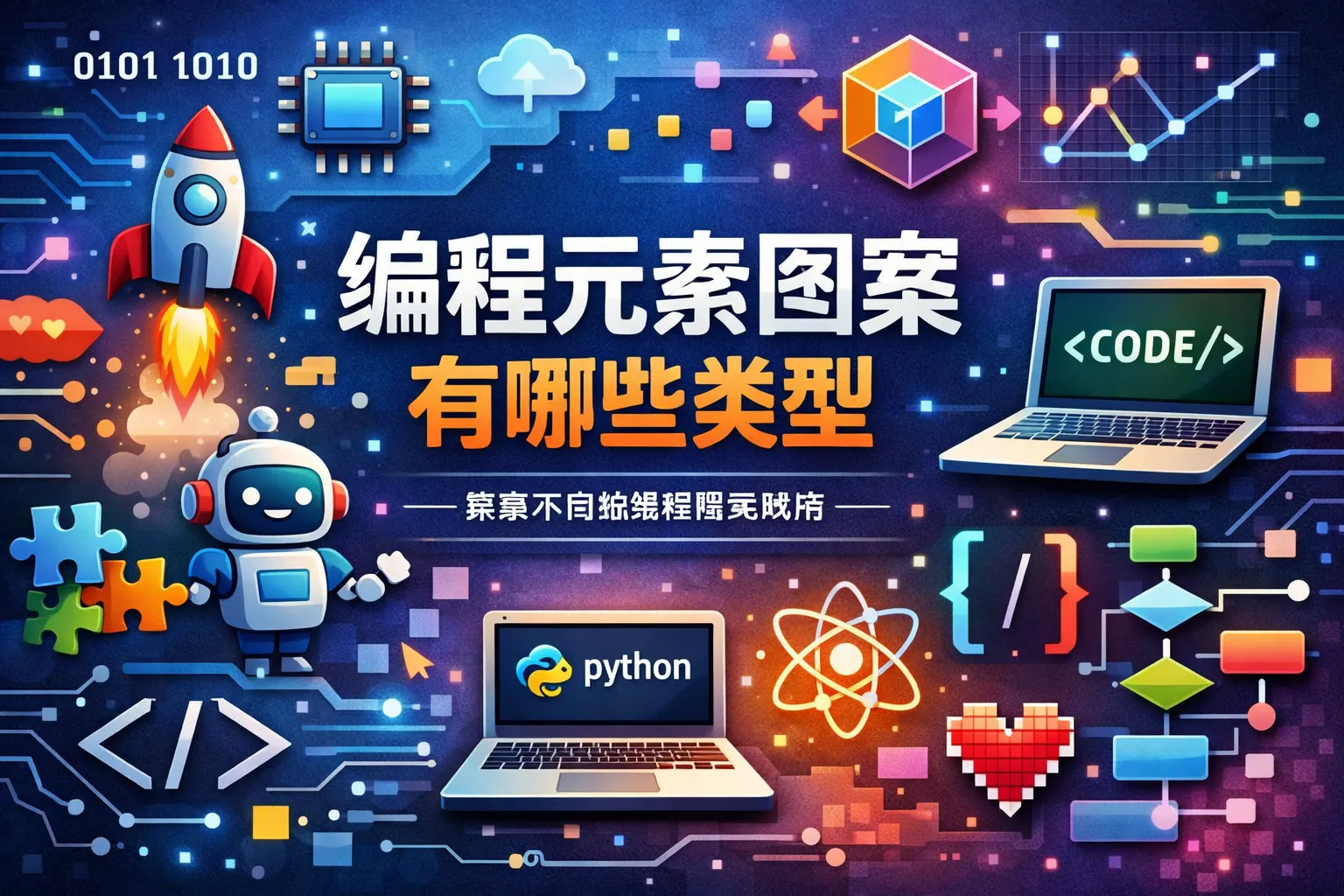 编程元素图案主要包括代码文本类、语法符号类、数据结构类、界面风格类、网络与硬件结构类、人工智能类、极客文化类以及抽象逻辑类等八大类型。这些图案来源于真实编程场景和计算机科学结构,在视觉设计中用于表达科技感、逻辑性与数字文化认同。随着人工智能与数字化发展,编程图案正从静态符号向动态化与系统化视觉语言演进,成为科技品牌与技术内容表达的重要组成部分。