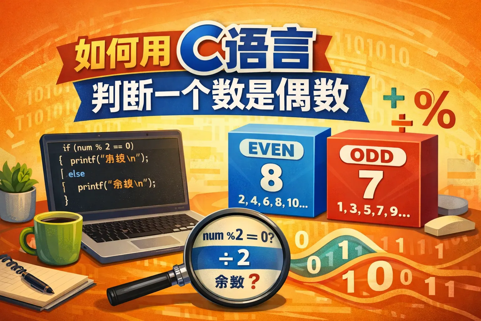 在C语言中判断一个数是否为偶数,最常用且推荐的方法是使用取模运算符判断该数除以2的余数是否为0,即n%2==0;若为0则是偶数,否则为奇数。在对性能要求较高的场景下,也可以使用位运算n&1来判断最低位是否为0。两种方式在现代编译器优化下性能差异极小,但取模写法语义更清晰、可读性更强,更适合日常开发。理解其背后的二进制原理有助于深入掌握C语言整数运算机制。