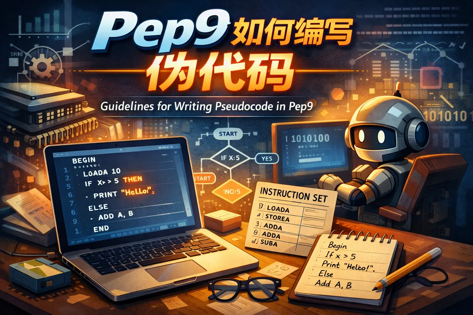 Pep9编写伪代码的核心在于将结构化算法逻辑清晰表达,并能准确映射为具体汇编指令。关键步骤包括明确算法目标、设计控制结构、规划变量内存分配和跳转标签,同时理解条件码与寄存器机制。通过掌握顺序、条件、循环及子程序调用等结构,结合流程图与测试用例,可以有效避免常见错误。熟练运用伪代码不仅有助于完成课程任务,更能提升对计算机底层运行机制的系统理解能力。