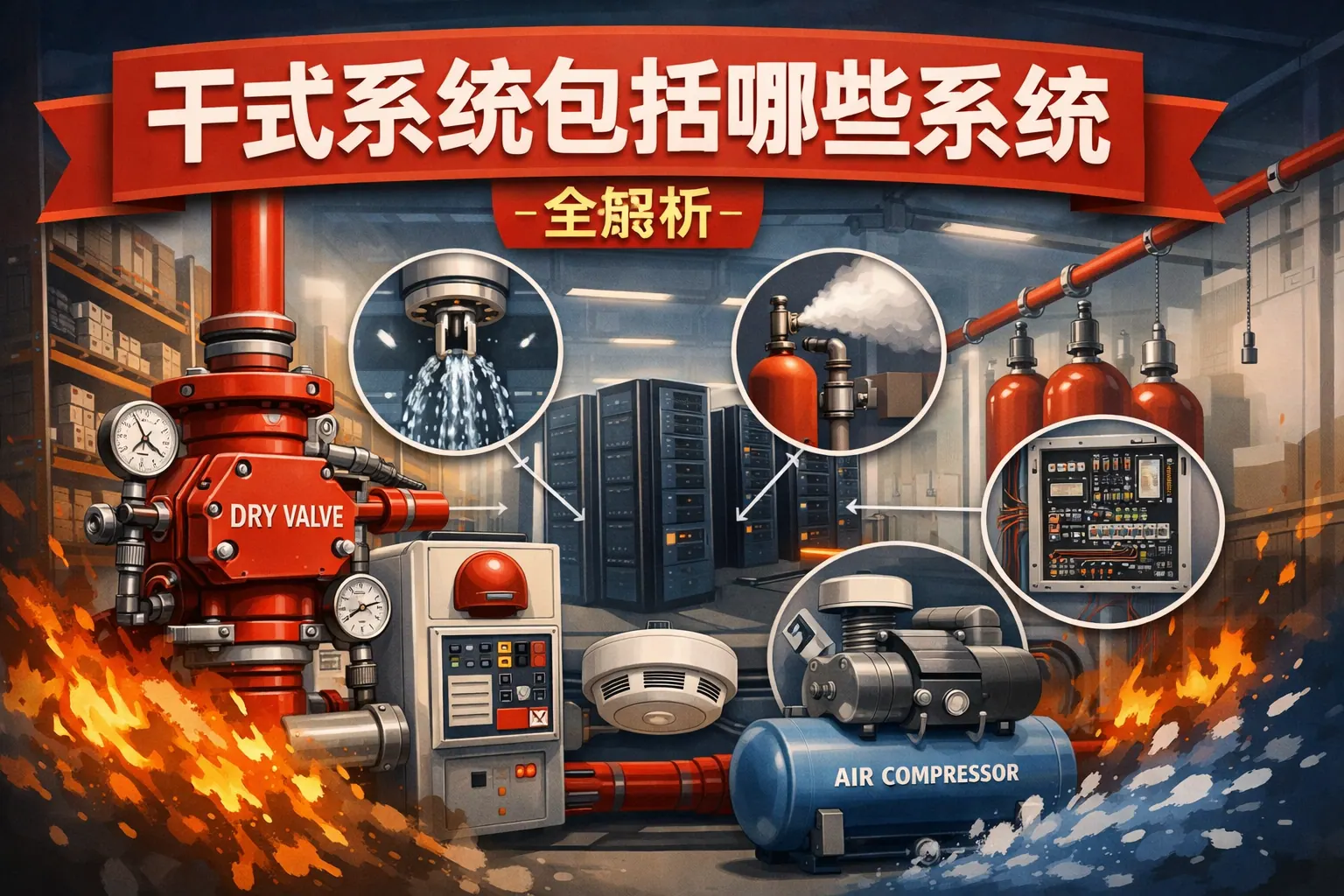 干式系统是指在常态运行中不以液体充满管道或设备,而以空气、气体或固态介质为运行基础的系统形态,广泛应用于消防、电力、暖通、工业环保及储能领域。典型系统包括干式喷淋、气体灭火、干式变压器、干式空调、干式除尘及固态储能系统等。其核心优势在于防冻、防腐、安全性高和节水环保,但也存在成本与复杂度较高的问题。未来干式系统将向智能化、模块化与低碳化方向持续发展。