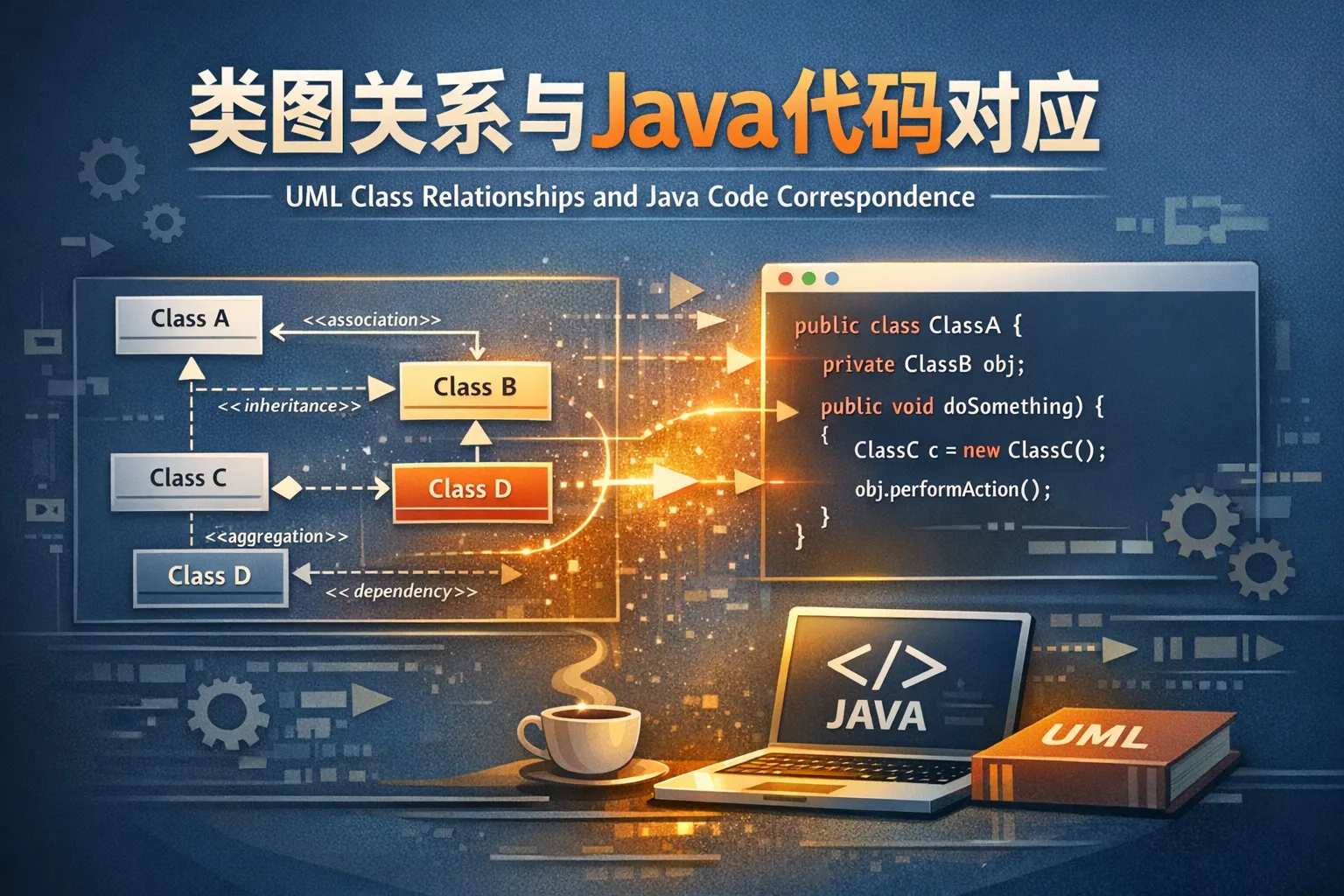 类图所有关联关系跟java代码如何关联的