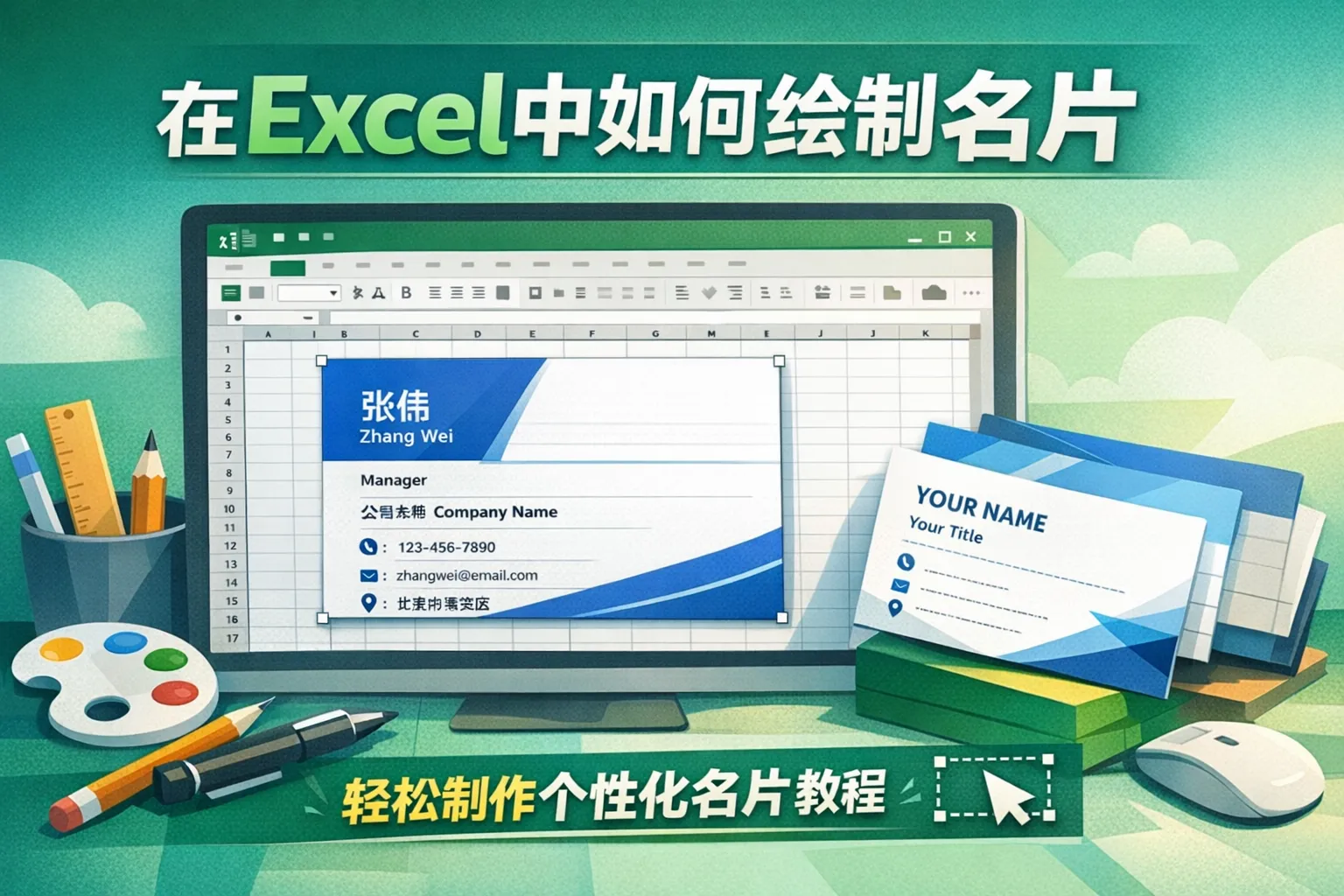 在excel中如何绘制名片