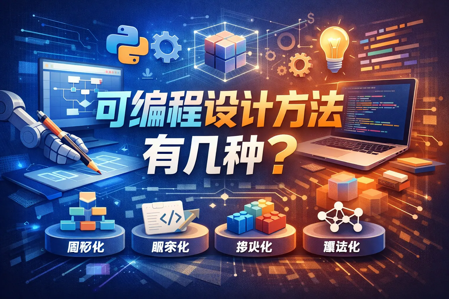 可编程设计方法主要包括参数化设计、规则驱动设计、脚本化设计、算法生成设计、模块化设计、数据驱动设计以及模型与约束驱动设计等类型。这些方法通过程序与逻辑规则替代传统手工设计,实现自动生成、快速迭代与优化决策。不同方法在自动化程度、技术门槛和应用场景上各有侧重,正在推动设计领域向智能化与高效率方向发展。