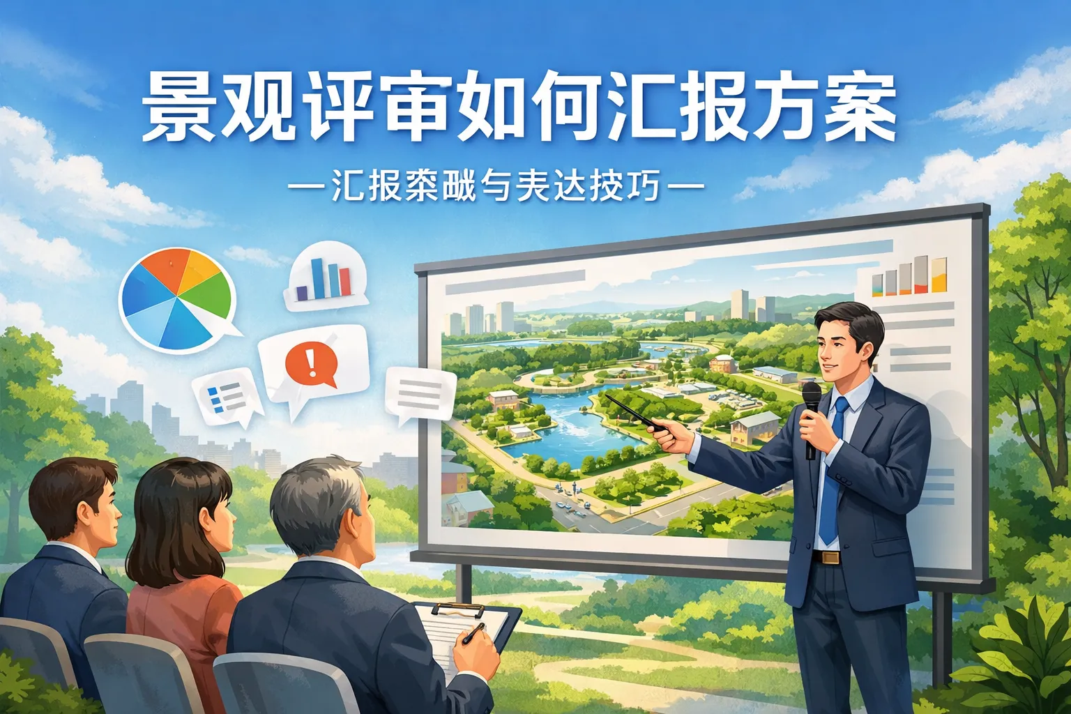 要在景观评审中高效汇报方案,应以问题-方案-效果-落地为主线,围绕受众关切构建金字塔结构与五步叙事,兼顾美学与工程。核心做法包括:用场地分析和数据指标揭示痛点,以图纸和试验验证技术可实施性,同步说明成本与里程碑,并准备风险应对与替代方案。针对政府、地产与公共项目差异化调整语言与深度,形成包含结论、证据、预算、行动与责任的“决策包”,配合协同机制闭环推进,提升通过率与落地质量。
