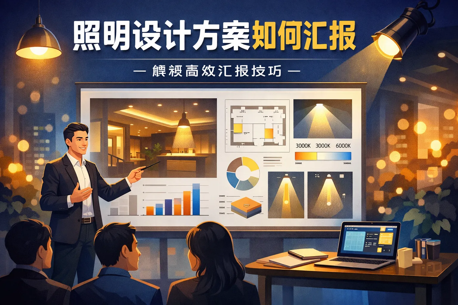 本文以“目标-指标-可视化-ROI”闭环为主线,系统讲解照明设计方案的汇报方法。核心要点包括:按受众定位确定叙事语言;以标准与数据构建证据链;用多层级可视化与样板间验证落地;以LCC与回收期模型量化成本与收益;通过风险清单与替代方案提升稳健性;以模块化交付与协作系统保障版本追溯。文章同时引用国际权威标准,并给出不同场景模板与实操清单,帮助在有限页数内把照明策略、合规指标、舒适体验与商业价值讲透。