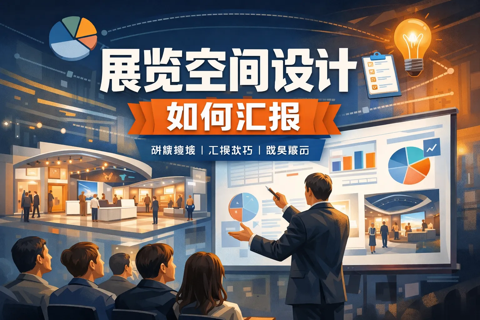 本文以“5W2H+故事线”为骨架,系统阐述展览空间设计如何高效汇报:先明确受众与目标,再用动线、灯光、材质与合规的证据化呈现支撑策略;以KPI与ROI闭环化数据说服,结合VR/AR、样机与BIM等介质提升理解度;通过价值分层预算、风险台账与RACI矩阵推进跨部门协同,并提供场景化模板与时长建议;最终实现从“好看”到“值当”的决策转化,并展望沉浸式与数字孪生驱动的未来汇报范式。