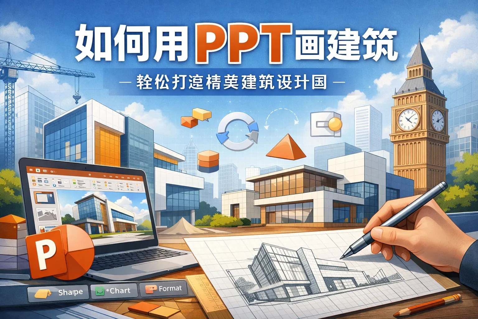 用PPT画建筑的核心在于利用基础形状拼接结构,通过对齐、分布、组合与渐变阴影等功能表现体量与层次。相比专业建模软件,PPT更适合概念表达、教学示意和汇报展示。只要掌握比例控制、模块复制和图层管理技巧,就能高效绘制立面图、轴测图甚至简易透视建筑图,满足大多数可视化表达需求。