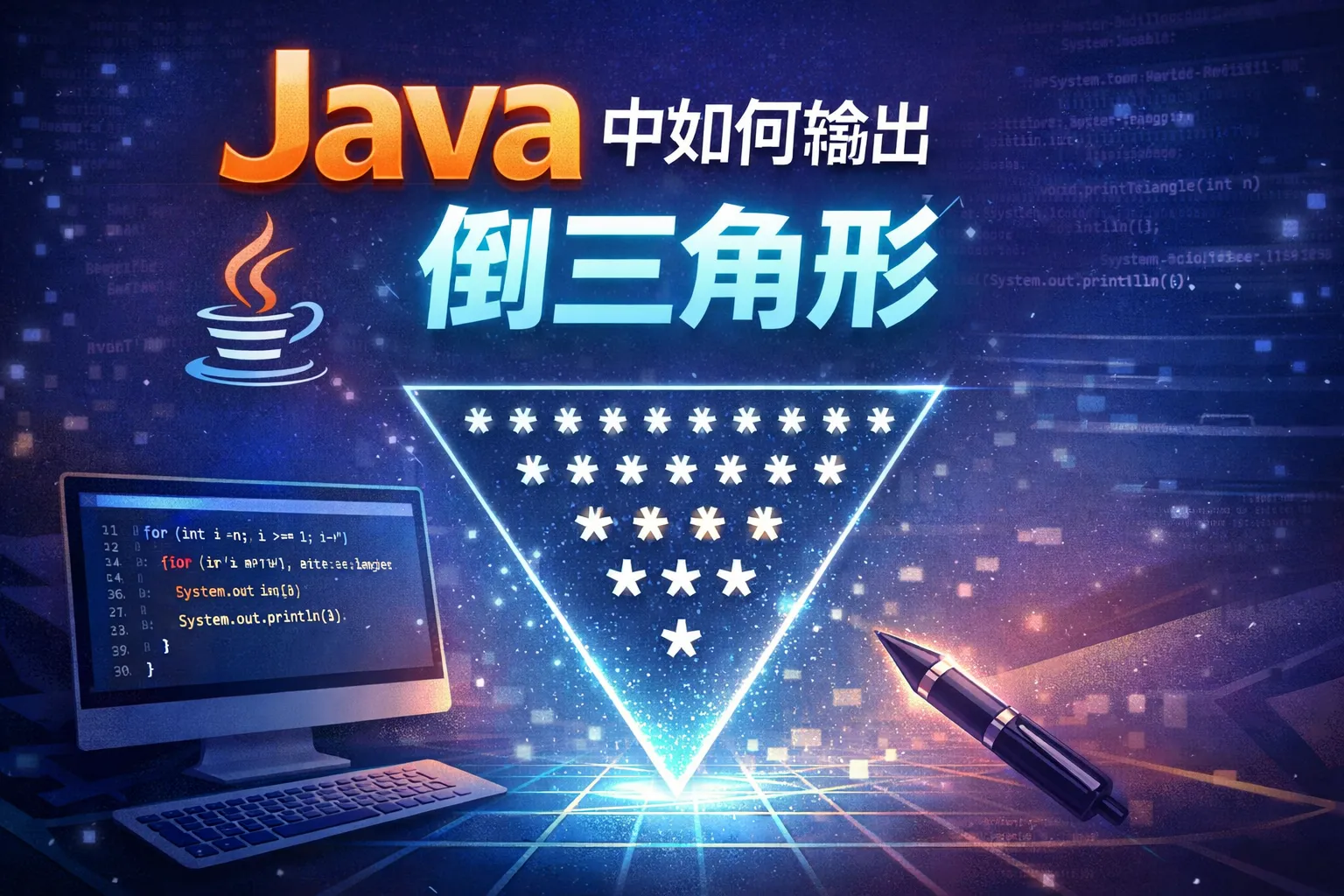 本文从核心逻辑、基础实现、进阶优化、错误排查和企业级拓展五个维度,拆解了Java倒三角形输出的完整实战路径,介绍了嵌套循环的核心执行逻辑、空格与星号的配比公式,提供了固定行数、交互式、带边框和彩色字符等四种实现方案,并结合权威行业报告给出了优化技巧与拓展应用场景,帮助Java开发者快速掌握倒三角形输出技能。