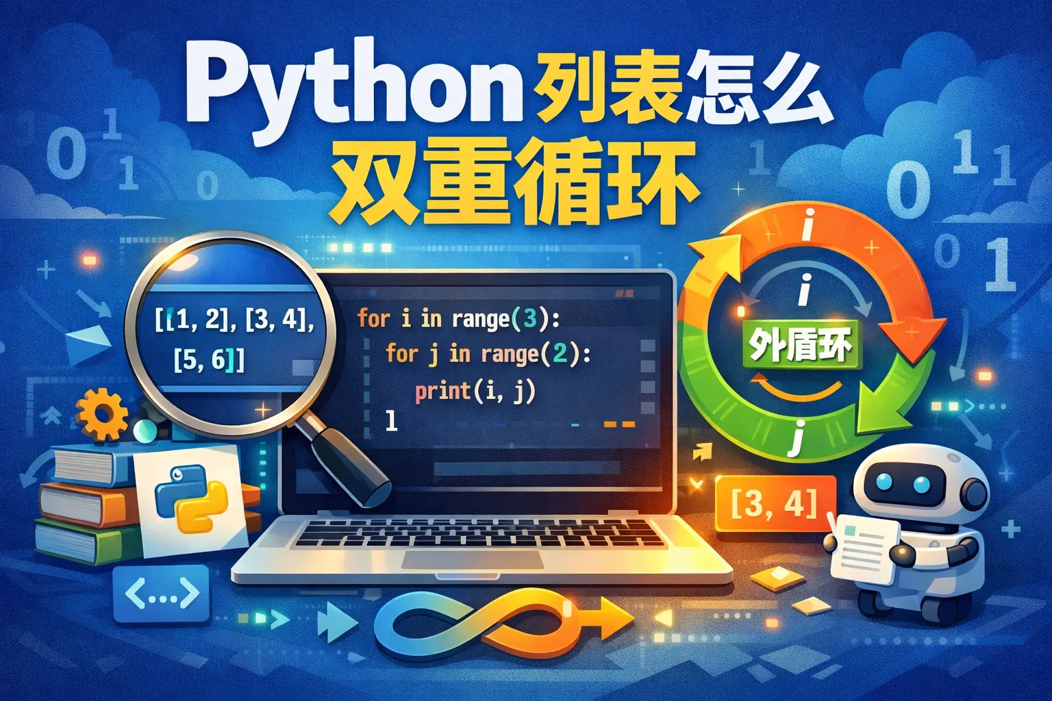 Python嵌套循环是在一个循环结构内部再嵌入另一个循环,通过缩进控制作用域,实现多层数据遍历与逻辑控制。常见形式包括for嵌套for与while嵌套while,适用于二维数组遍历、组合生成和矩阵计算等场景。嵌套循环的执行机制是外层控制轮次、内层完整执行,其时间复杂度随层数呈指数增长。合理使用break与continue、优化算法结构以及采用列表推导式替代方案,有助于提升代码效率与可读性。虽然在大规模数据处理中可借助向量化方式替代部分嵌套结构,但嵌套循环仍是编程基础能力的重要组成部分。