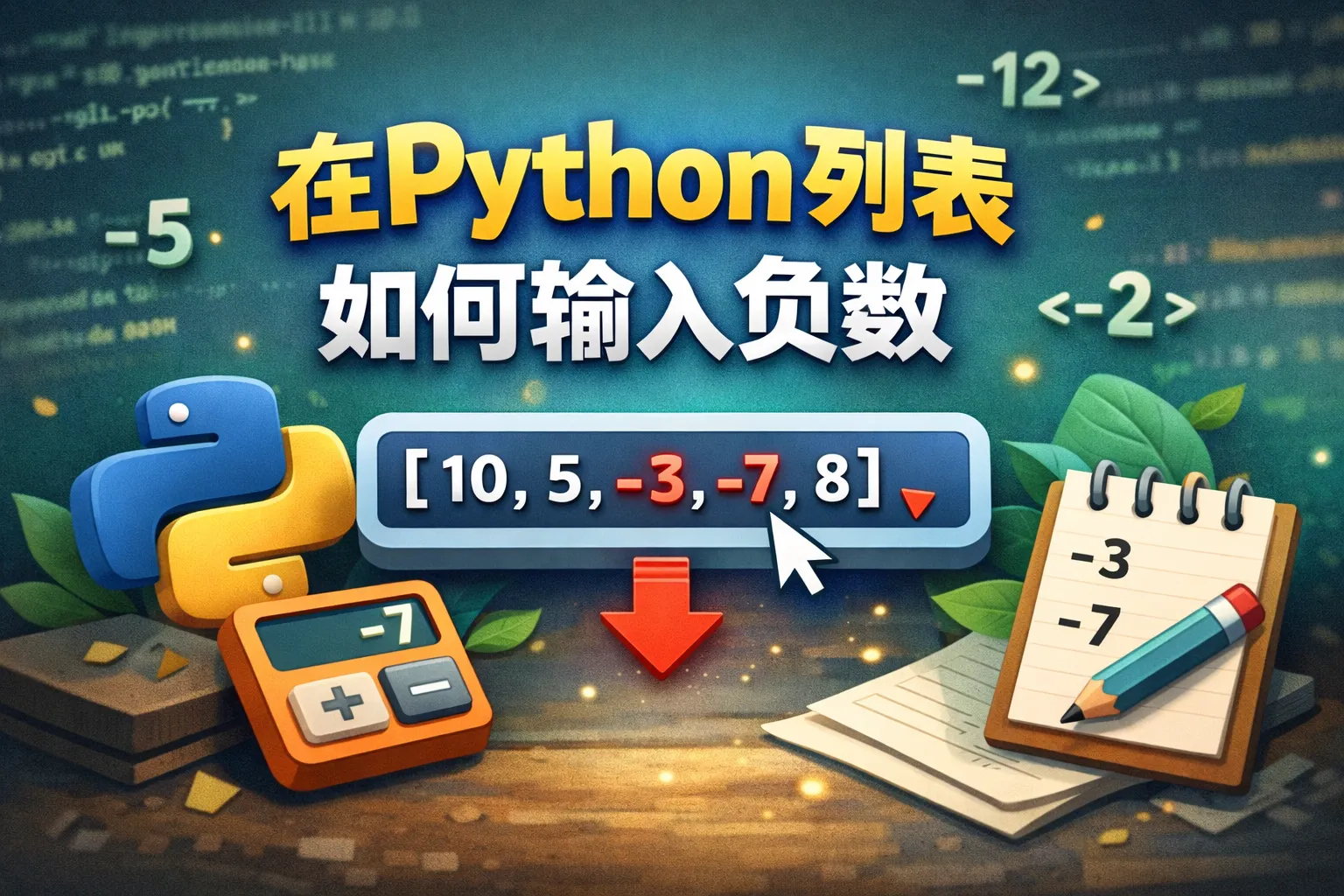 在 Python 列表输入负数,直接写带负号的字面量如 [-1, -3.5],或用 append(-8)、extend([-3, -4])、insert(0, -1) 等方法添加;批量生成可用列表推导式 [-x for x in range(1,6)],从输入解析用 int("-7")/float("-0.5");务必区分负索引(list[-1] 取末尾元素)与负值(-1 作为元素),并在校验、排序、聚合时保持数学语义一致。
