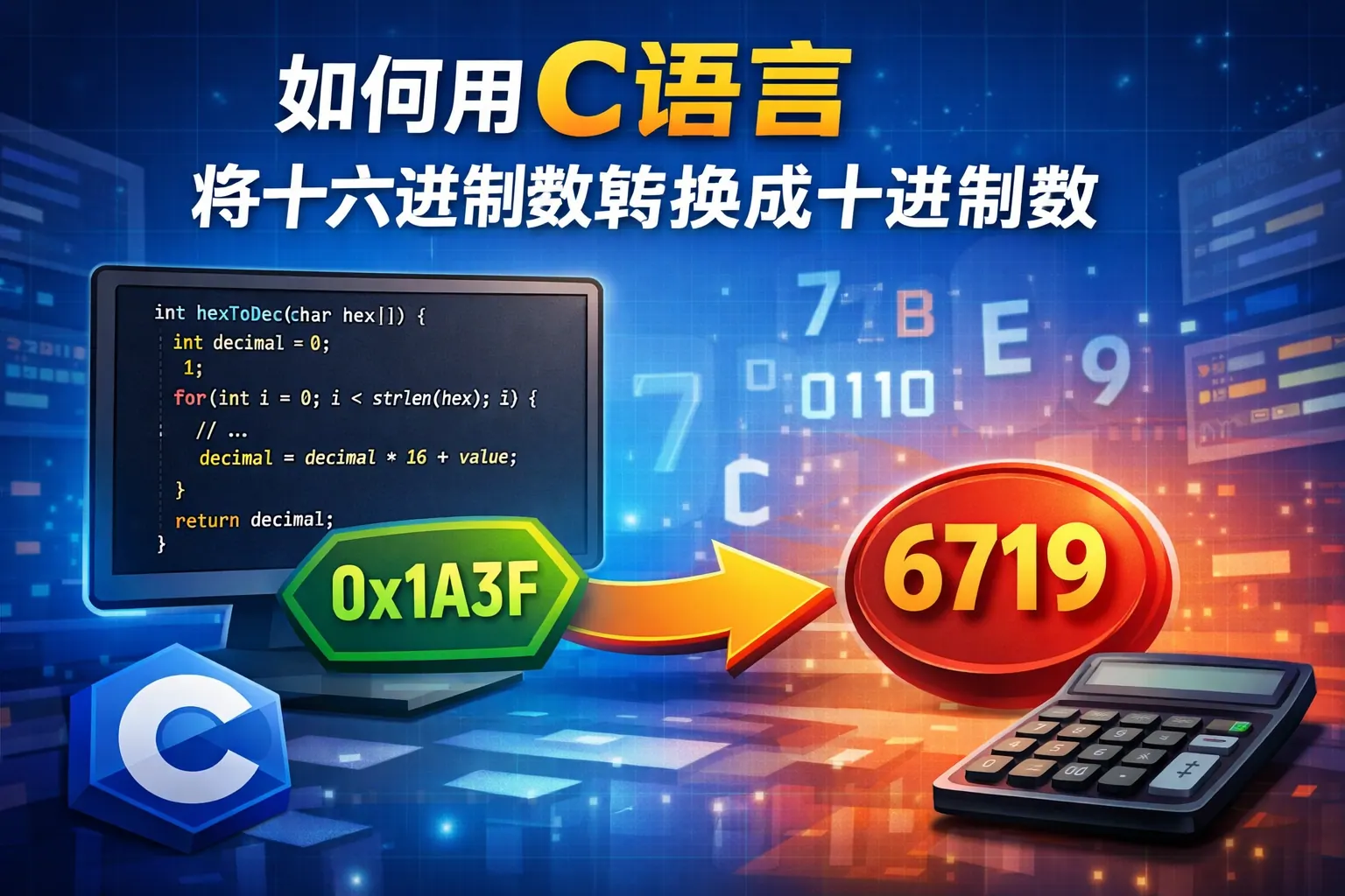 如何用C语言将十六进制数转换成十进制数