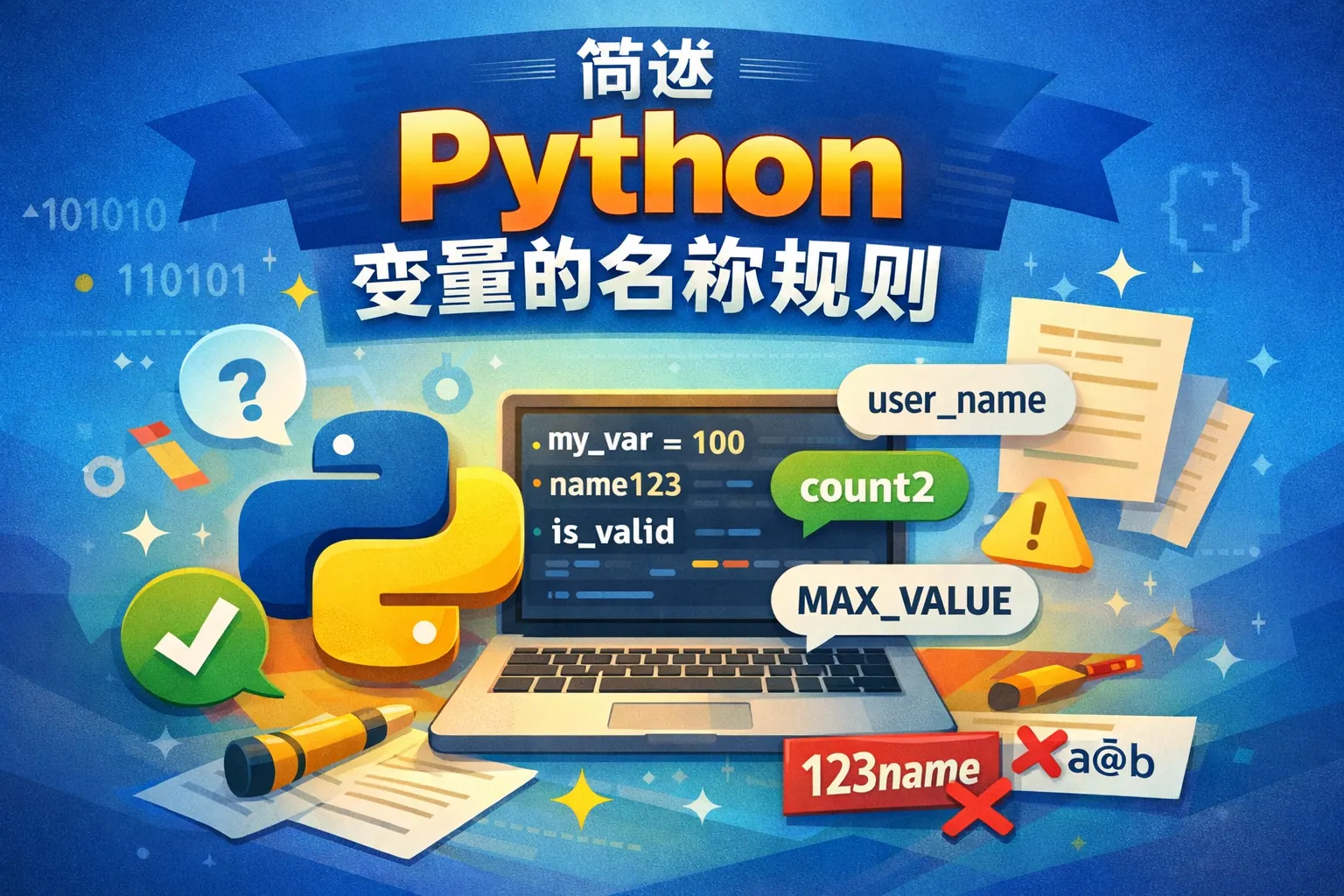Python 对标识符开头字符有明确限制,变量名、函数名等不能以数字、特殊符号、空白字符或保留关键字开头,只能以字母或下划线开始。这些规则源于语法解析和语言设计需求,违反会直接导致语法错误。理解这些限制不仅能避免初级错误,还能提升代码可读性、规范性和工程可维护性,是学习和使用 Python 的基础能力之一。