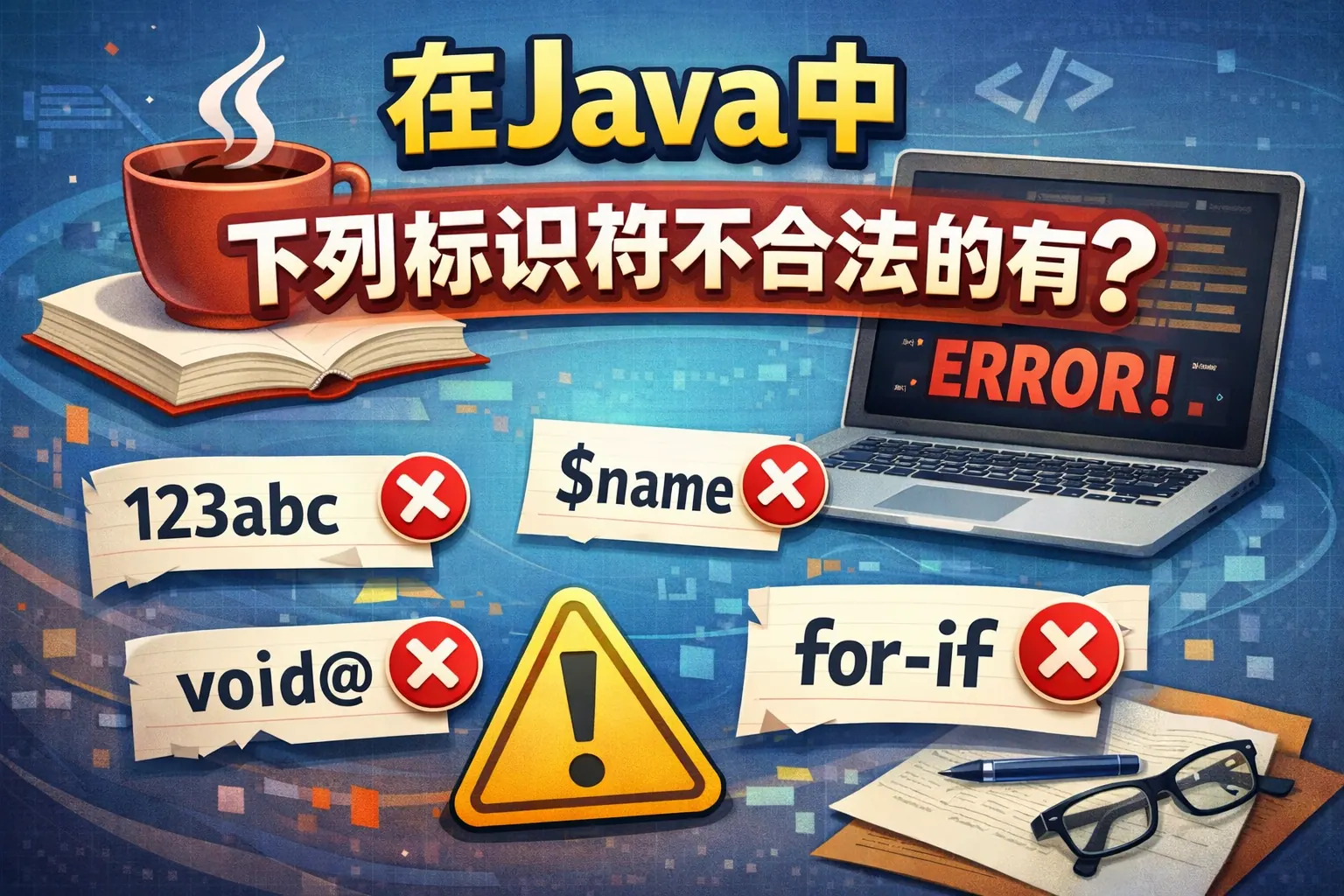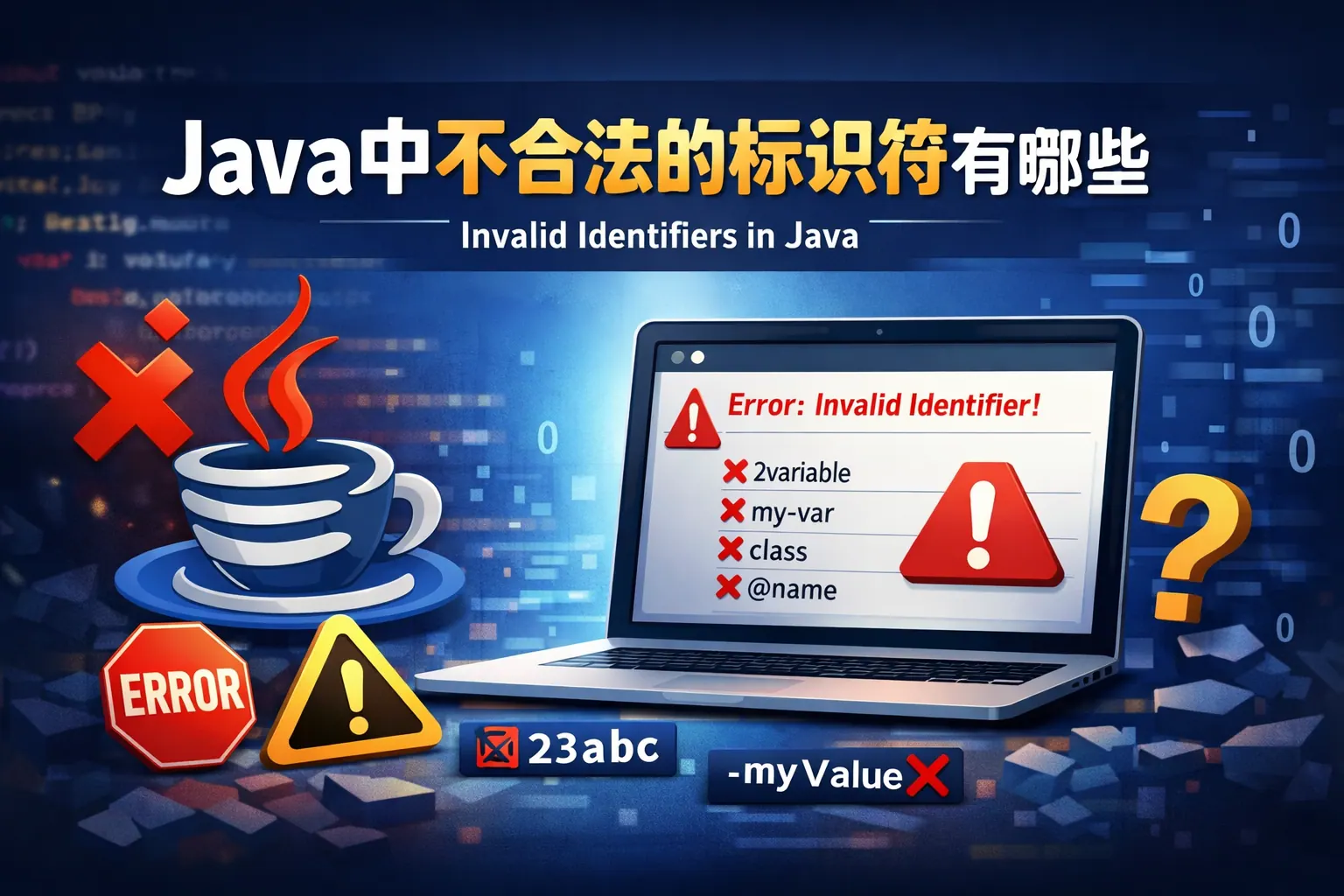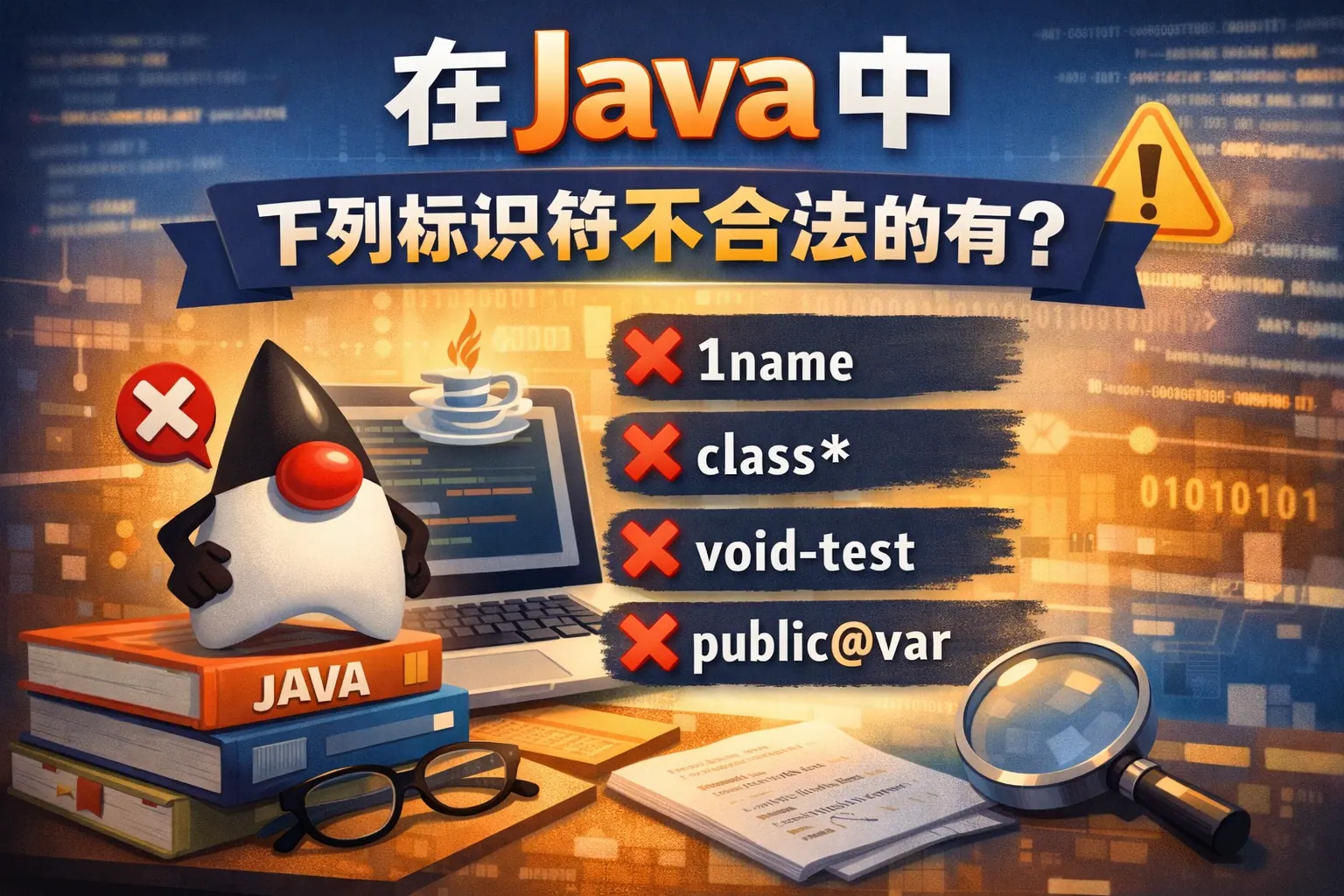 在 Java 中,不合法的标识符一定违反语言规范中的硬性规则,主要包括三类情况:以数字开头、包含 Java 不允许的字符(如空格、短横线、特殊符号),以及使用 Java 关键字或 Java 9 之后被禁止的单独下划线。只要命中任意一条,就会在编译阶段直接报错。理解这些规则,比死记具体示例更高效,也更有助于在考试、面试和实际开发中快速判断标识符是否合法。